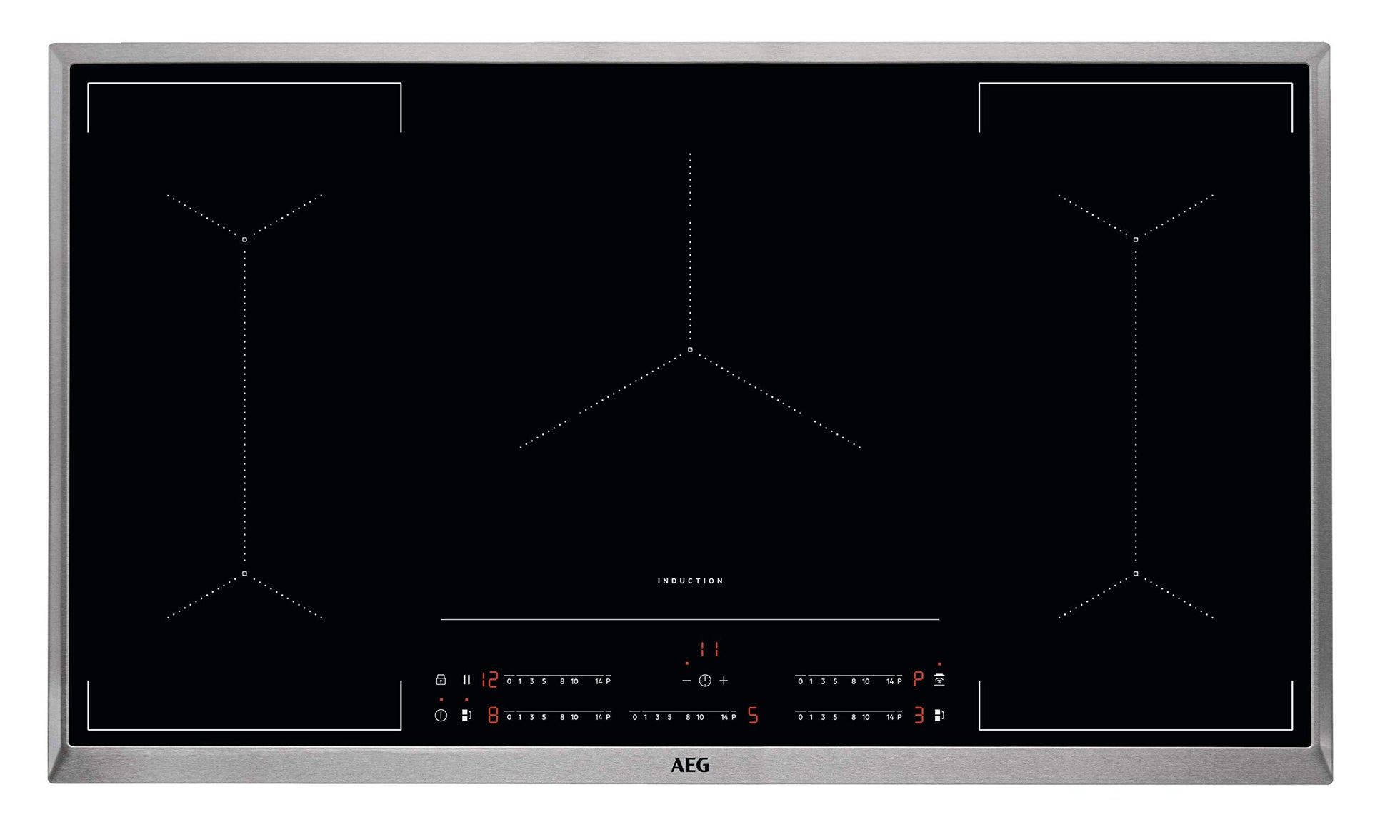 AEG IKE9545AXB Autonomā plīts virsma / Indukcija / 6000. sērija ar MultiBridge / Hob²Hood / 90 cm / Nerūsējošā tērauda rāmis / 5 gatavošanas zonas / Bridge funkcija / Jaudas funkcija / Bērnu drošība