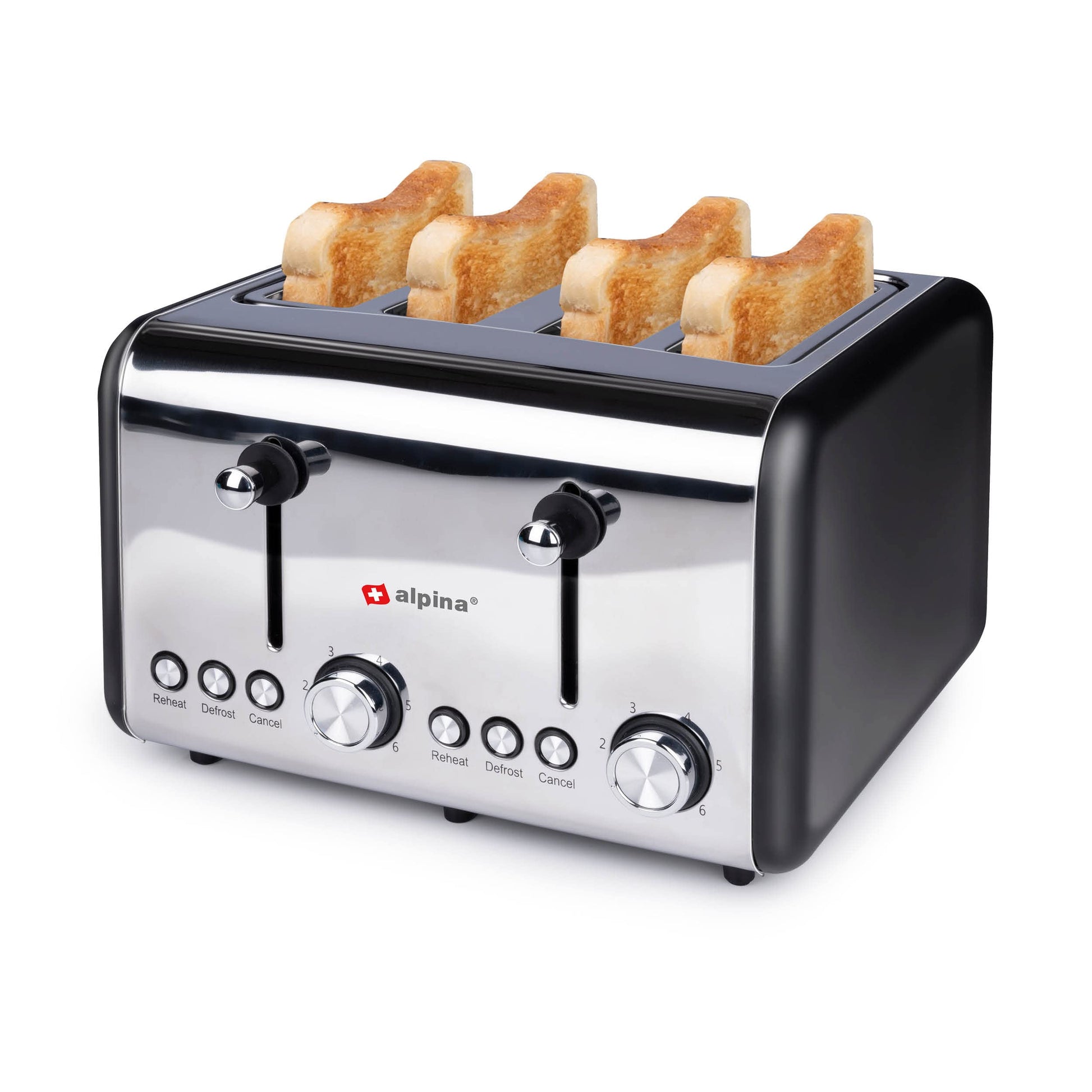 alpina tosteris - 4 šķēles maizes - 230V/1500W - 6 brūnināšanas līmeņi - atkausēšana - uzsildīšana - tosteris - sudrabs