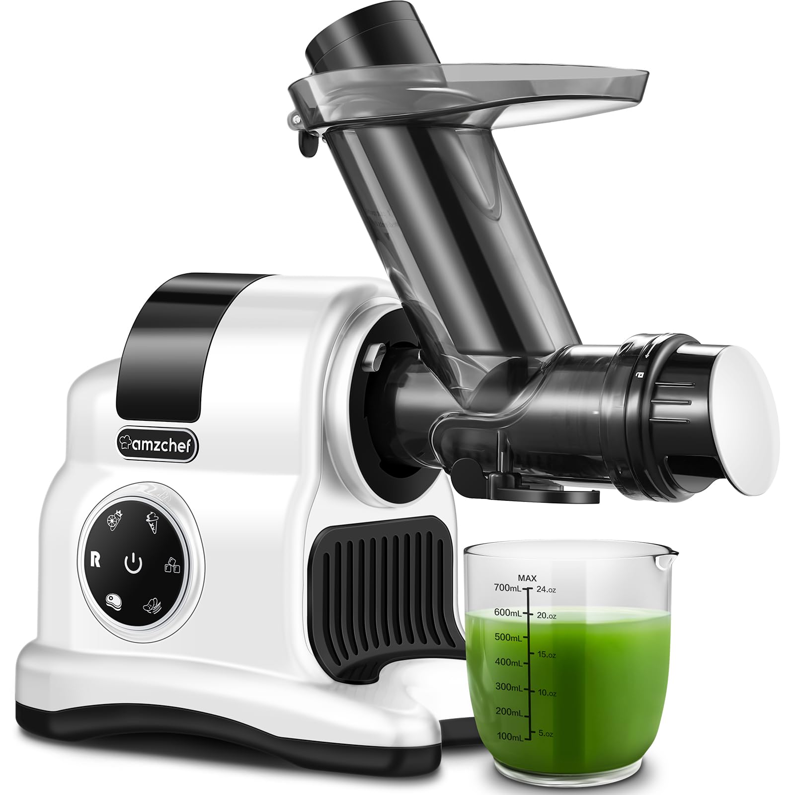 AMZCHEF sulas spiede ar 80MM lielu iepildīšanas caurumu - 150W lēna sulas spiede ar 2 ātrumu režīmiem un atpakaļgaitas funkciju - sulas spiede veseliem dārzeņiem un augļiem testu uzvarētājs - balta