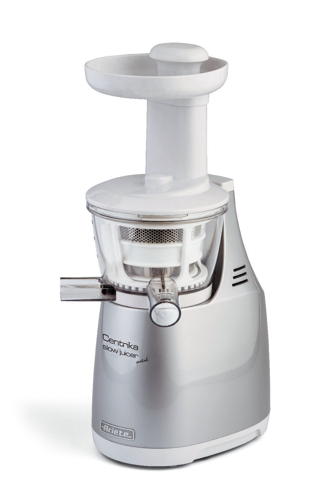 Ariete Slow Juicer 168 ar tikai 65 apgr./min maksimālai sulas ražai un labākajai kvalitātei • Jauns veids, kā izspiest sulas no augļiem un dārzeņiem! Ar Slow Juicer tiek saglabāts vairāk barības vielu (vitamīnu, enzīmu, antioksidantu, garšas un krāsas nesēju) nekā, izspiežot ar augstiem apgriezieniem. Lēnās sulas izspiešanas procesā no neliela augļu vai dārzeņu daudzuma iegūst lielu sulas daudzumu. Šī sula ir ļoti viendabīga un nesadalās īsā laikā, kā tas notiek tradicionālajā sulas izspiešanā. • Mūsu produkta īpašības: Tikai 65 apgr./min labākajiem sulas rezultātiem | Ievērojami vairāk barības vielu (vitamīni, enzīmi, antioksidanti, garšas un krāsas nesēji), jo ar mazajiem apgriezieniem sulā nonāk ļoti maz skābekļa. Turklāt tieši mizās, kas tiek izmantotas, ir ļoti daudz enzīmu, vitamīnu utt. | Ļoti augsta sulas raža | Labāka sulas kvalitāte, kas ir redzama: sula nesadalās, bet paliek viendabīga! | Izmantojiet miziņas mērču vai kūku pagatavošanai | Sulas un miziņu tvertnes ietilpība: katra 1 L | 1 ātruma līmenis | Smalks mikro nerūsējošā tērauda filtrs | Ļoti kluss motors (DC motors) | Pret slīdēšanas kājas | 150 vati