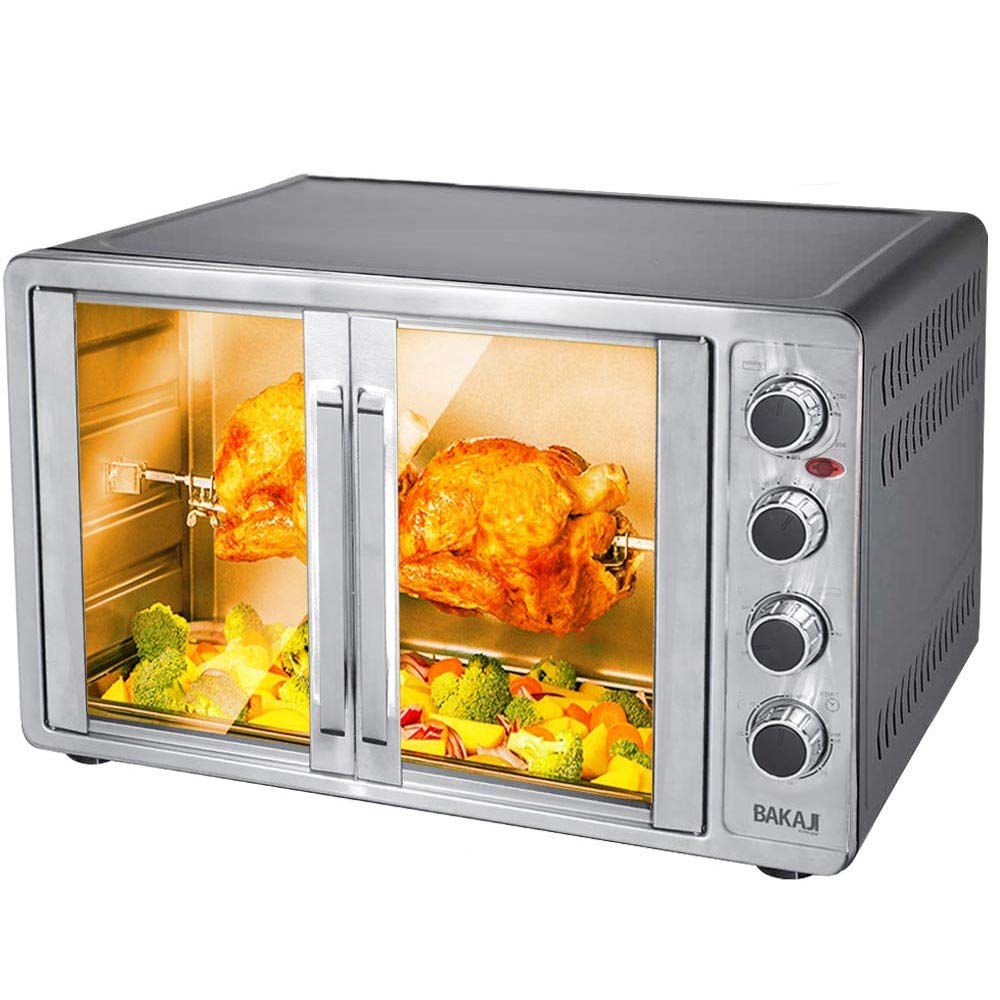 Bakaji elektriskā krāsns ar konvekciju, 55 l, jauda 2200 W, ar divām iekšējām durvīm, 4 gatavošanas līmeņi, regulējama temperatūra, taimeris ar grilēšanas spit un piederumiem