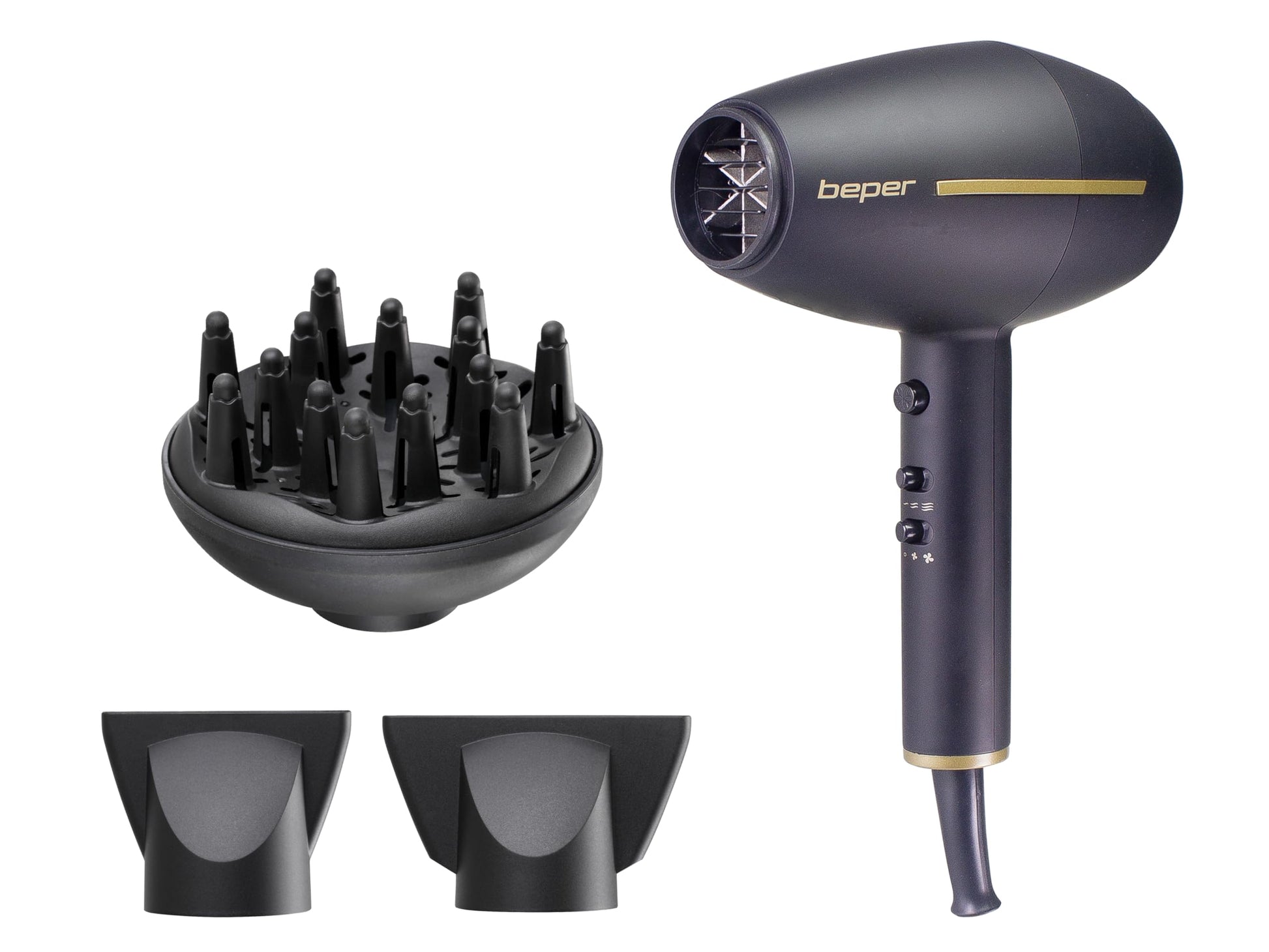 Beper izstrādātais matu fēns ir ideāls matu žāvētājs visiem, kas meklē profesionālu rīku gan mājās, gan darbā. Profesionālais maiņstrāvas motors nodrošina jaudu līdz 2400 W, ļaujot ātri izžāvēt matus un iegūt nevainojamu frizūru kā no salona. Tas ir aprīkots ar dažādiem piederumiem, lai varētu īstenot visus vēlamās frizūras. Mēs iesakām izmantot 7 mm plāno koncentratoru gludai un elegantai frizūrai, 9 mm koncentratoru ātrai žāvēšanai un difuzoru apjomīgām, definētām cirtām un dabīgām matu viļņiem. Mājas lietošanai Beper matu fēns ir ideāls rīks, jo tam ir pārkaršanas aizsardzības ierīce un noņemams aizmugurējais režģis, kas atvieglo putekļu un matu tīrīšanu. 2,5 m kabeļa garums.