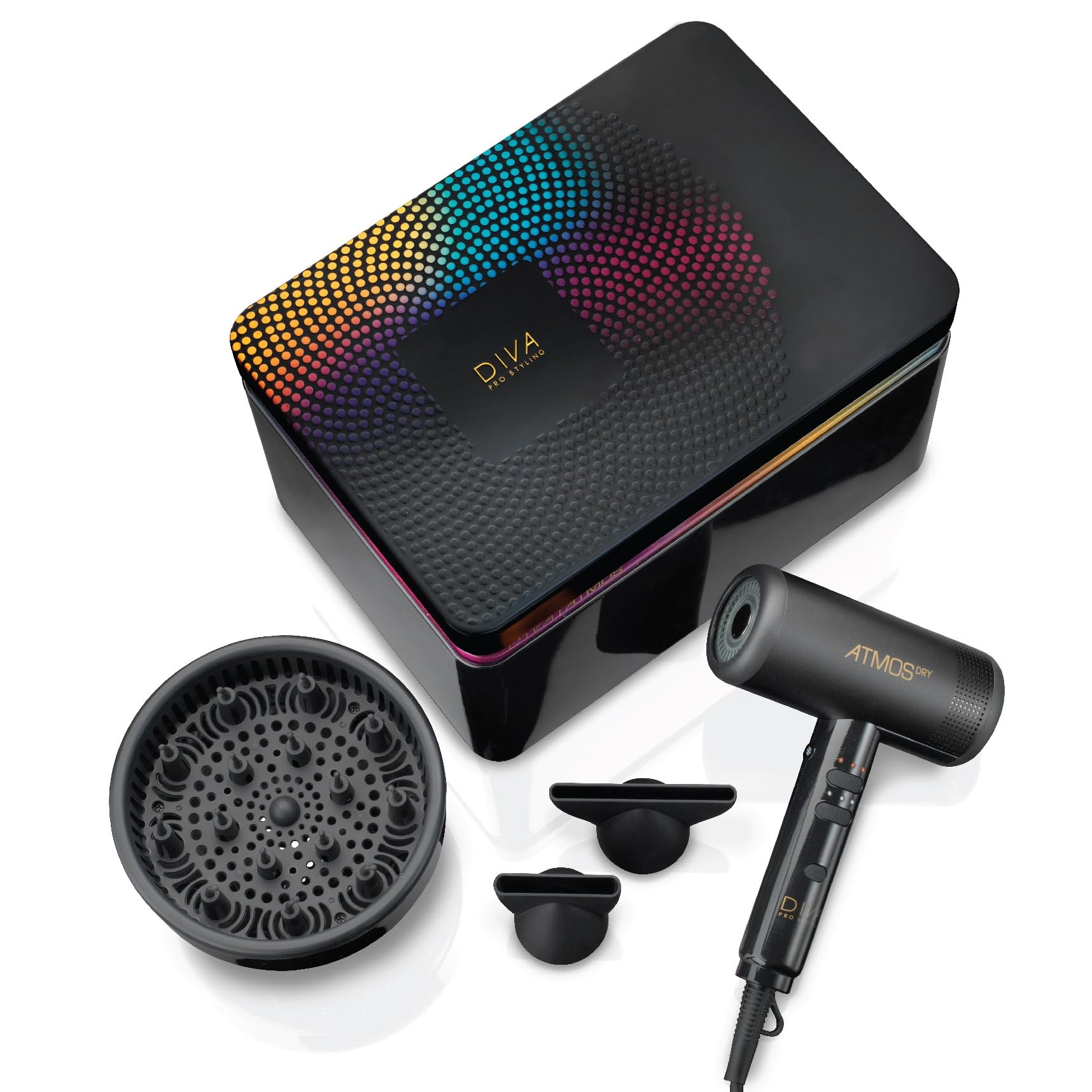 Mēs iepazīstinām ar jauno Atmos Dry, kas sver ceturto daļu no tipiska profesionālā AC motora svara, nesamazinot izturību vai jaudu. Motors ar 100 000 apgriezieniem minūtē ir izstrādāts profesionāli, lai nodrošinātu ultrātraku žāvēšanu ar ievērojami mazāku motora troksni, kas ļauj radīt stresa nesaturošu salonu vidi. Iekļauts jaudīgs Atmos PLUS kondicionēšanas sistēma, lai cīnītos pret frizūru un padarītu matus gludus un spīdīgus.