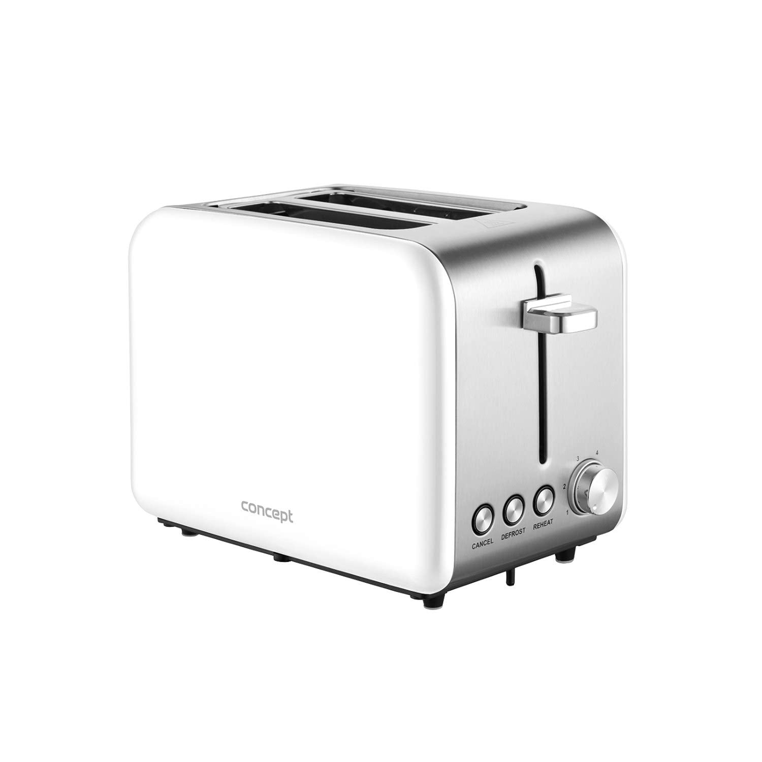 KONCEPT mājsaimniecības ierīces TE2051 nerūsējošā tērauda tosteris ar plašu atveri 36mm 2 grauzdēšanas kamerām elektroniskais taimeris 950W matēts (balts)