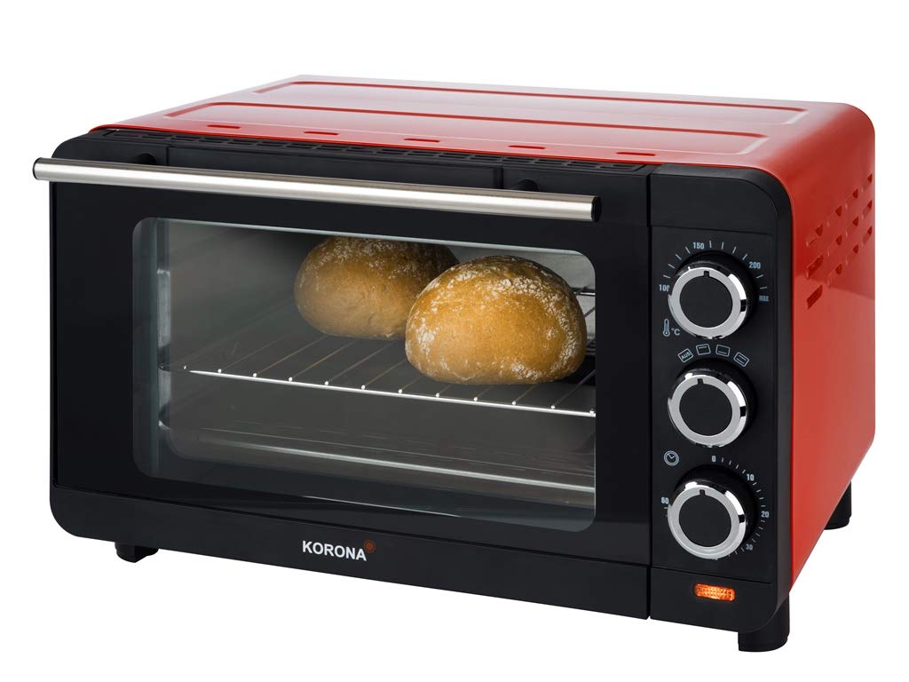 Korona 57005 tosteris | Sarkans | 14 litri | Mini cepeškrāsns ar izņemamu drupatu plati | Mazā cepeškrāsns