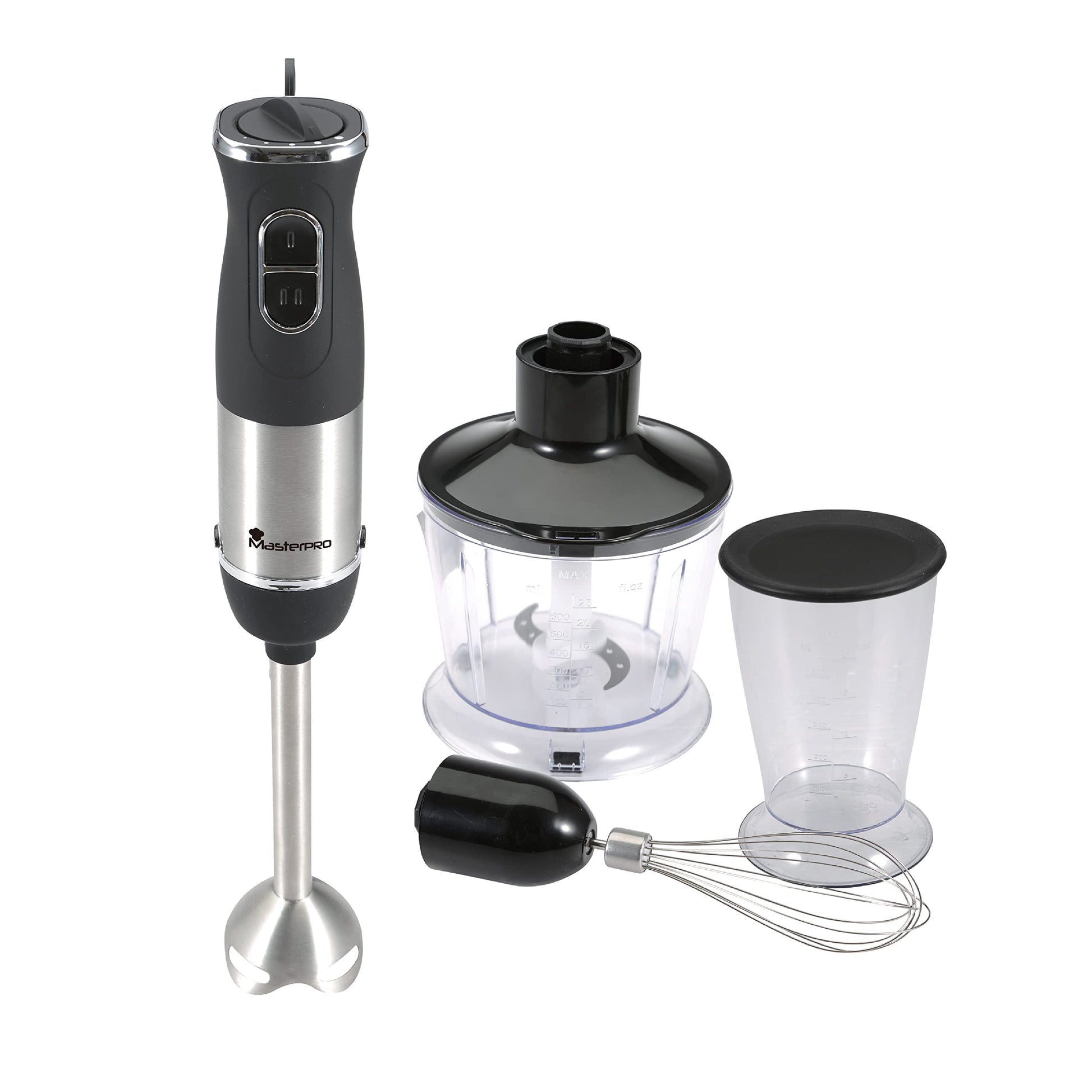 MasterPro Foodies | Iegremdēšanas mikseris ar 400 W | Iegremdēšanas mikseris ar nerūsējošā tērauda asmeņiem | Roku mikseris ar 2 ātrumiem | Virtuves piederumi | Iekļauts piederumu komplekts