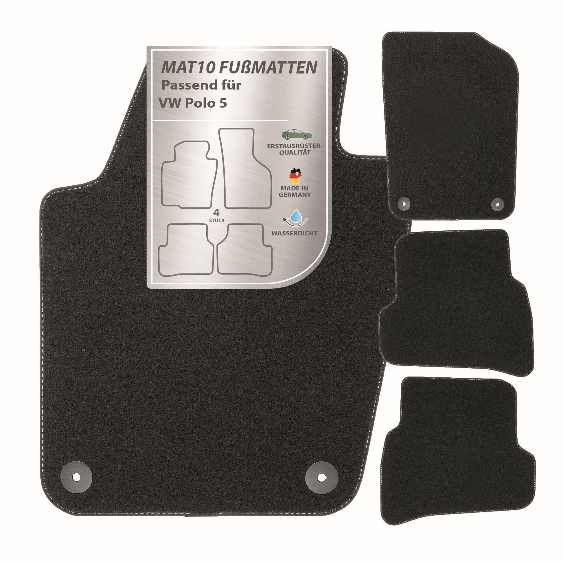 16. MAT10 – automašīnas paklāji, kas piemēroti VW Polo 5 (BJ 06/2009 - 08/2017, tips 6R + 6C) no velūra | 4 gabalu automašīnu paklāju komplekts | izturīga oriģināla kvalitāte, ražots Vācijā