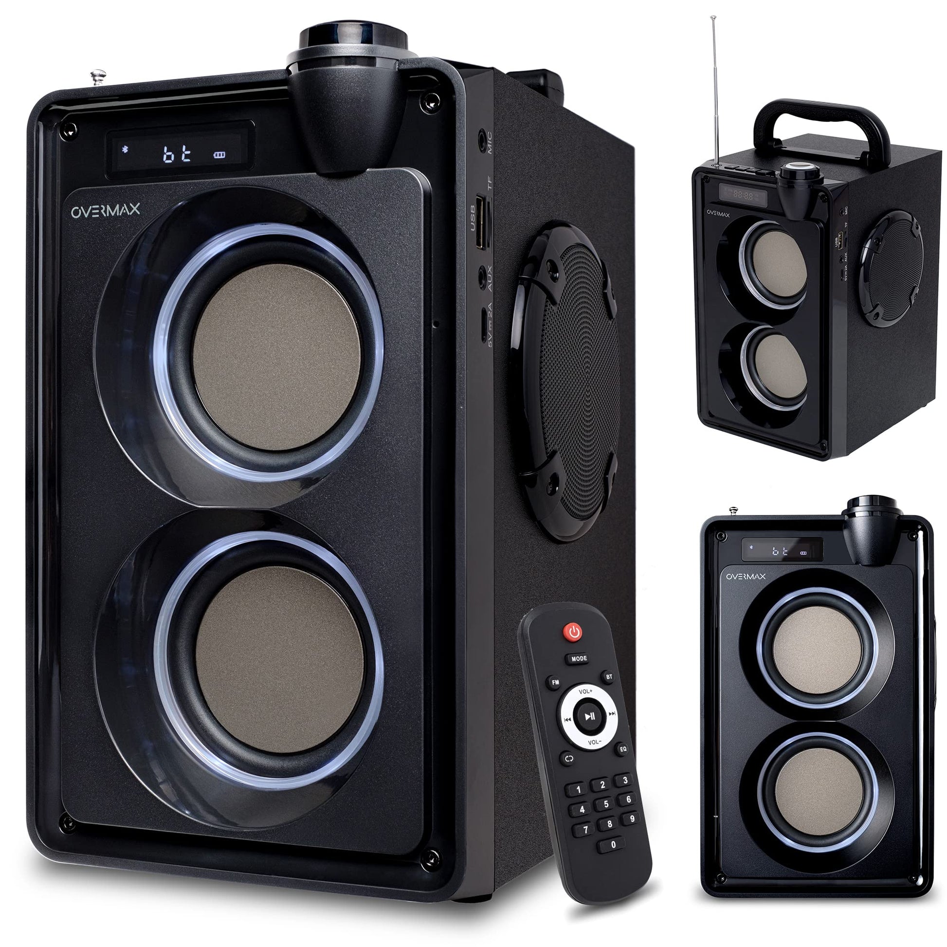 Overmax Soundbeat 5.0 Bluetooth skaļrunis, USB, SD, AUX radio, 20 W, karaoke funkcija, audio failu atskaņošana, FM radio, Mini Jack 3,5 mm, USB, AUX akumulators, 3600 mAh 8 stundas darbības.