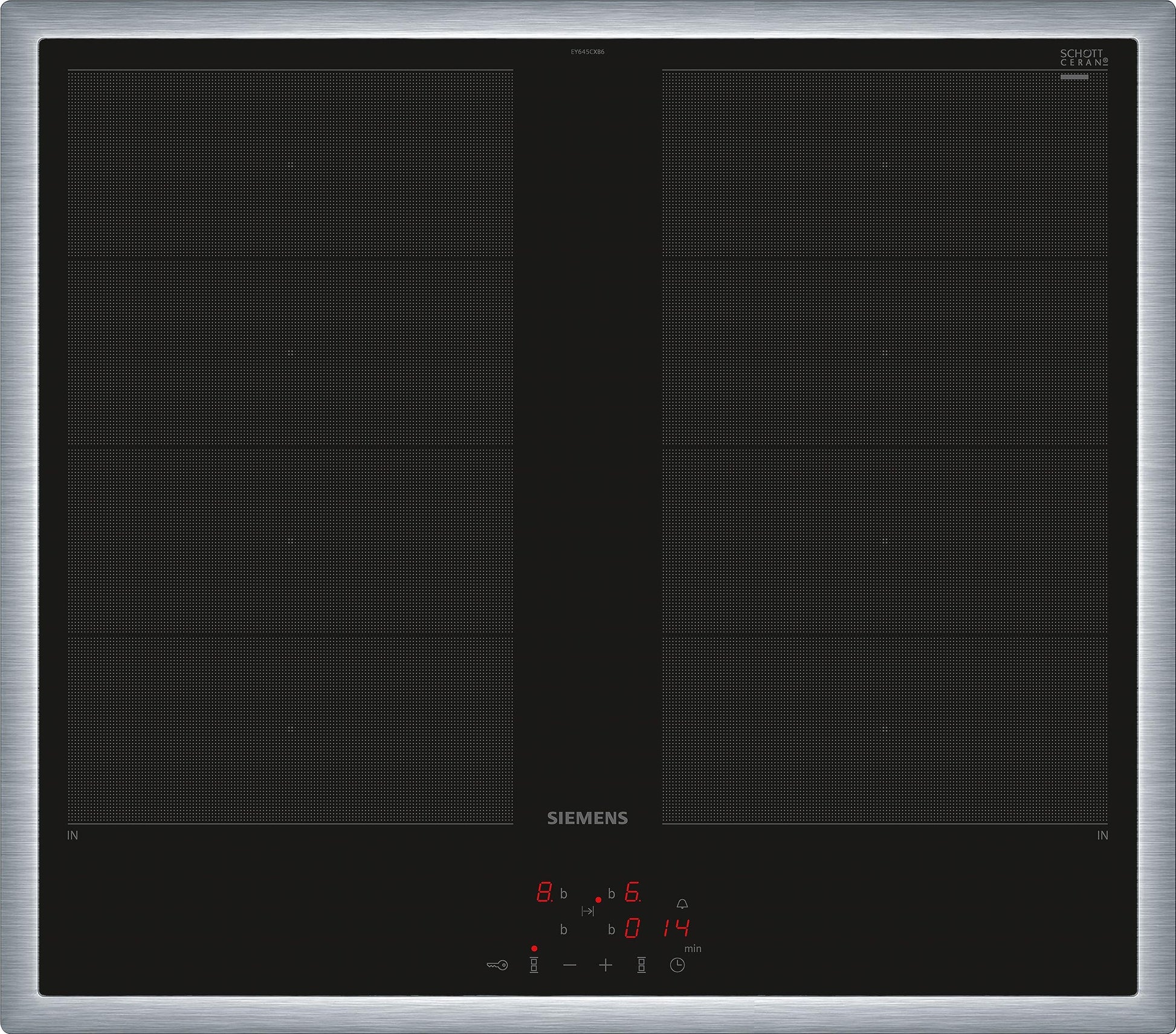 Siemens EY645CXB6E iQ700, indukcijas plīts, 60 cm, ar plīti kontrolēta, melna, ar rāmja uzlikšanu, varioIndukcija, powerBoost, powerIndukcija - ātra, tīra un droša gatavošana.