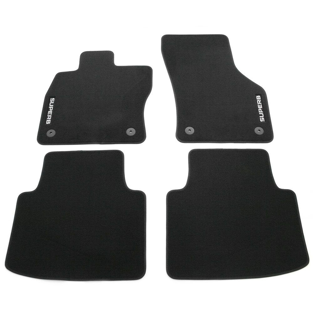 Skoda 3V1061404B tekstila paklāji 4x auduma paklāji melnā krāsā ar SUPERB uzrakstu