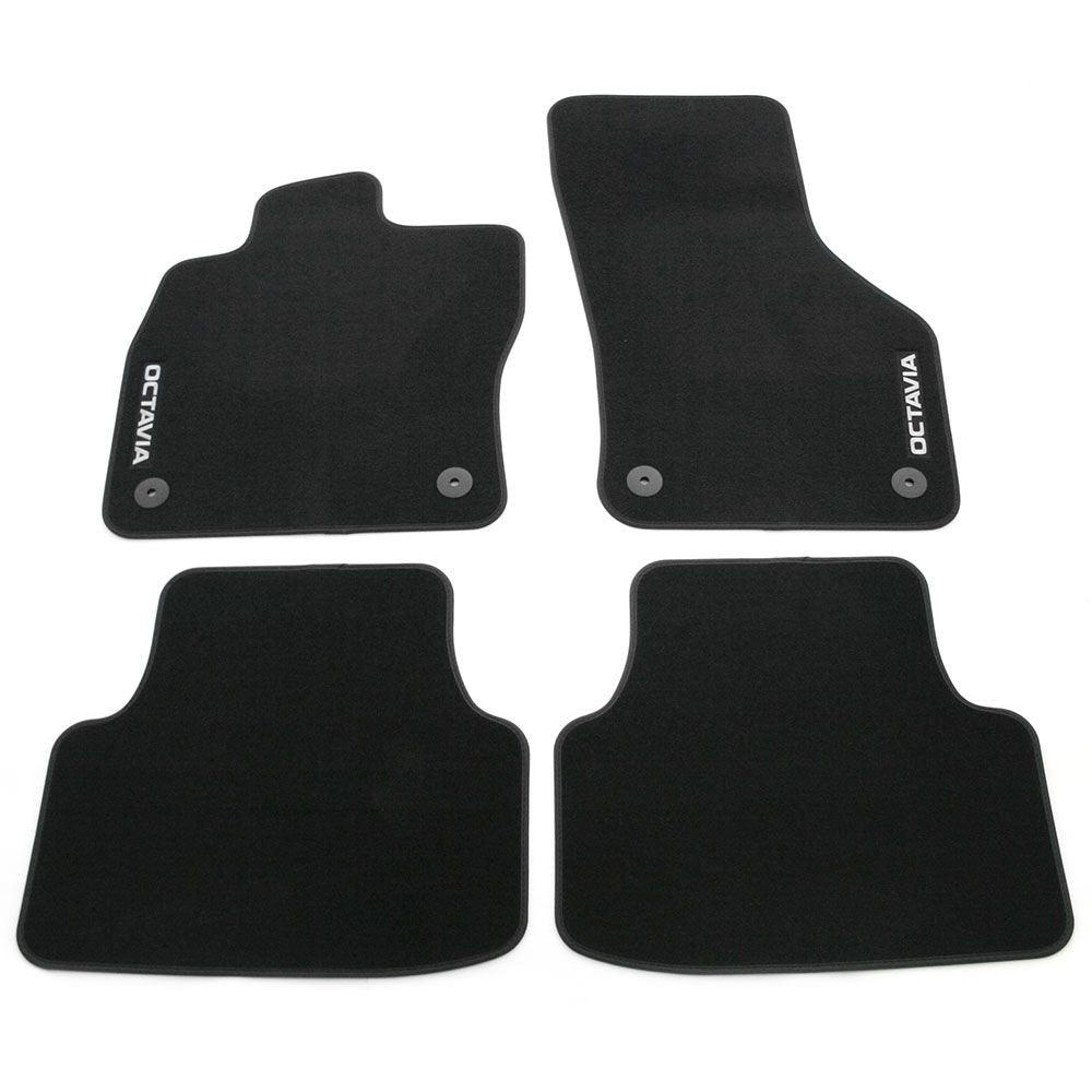 Skoda 5E1061404B Prestige tekstila paklāju komplekts Premium velūrs 4x auduma paklāji melnā krāsā ar Octavia uzrakstu