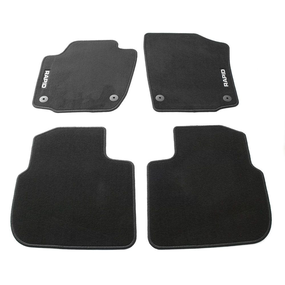 Skoda 5JB061404E tekstila paklāji 4X auduma paklāji ar Rapid uzrakstu, melni
