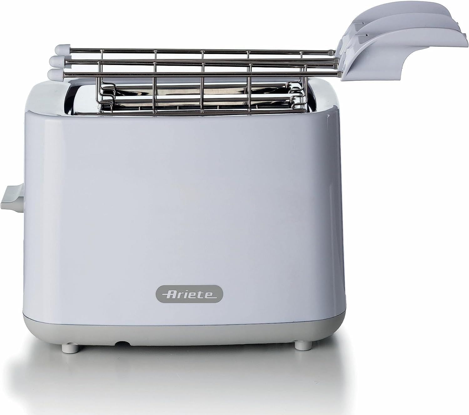 Ariete brokastu 147 tosteris, tosteris ar 7 brūnināšanas līmeņiem, automātisko izmešanu, izņemamu drupatu kasti, apstāšanās pogu, iekļaujot nerūsējošā tērauda knaibles, 760W, balts