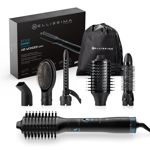 Bellissima stila eksperts gaisa brīnums 6-in-1 siltā gaisa suka, 6 piederumi, jonu tehnoloģija, keramikas un argana eļļas pārklātas sukas, žāvē un piešķir apjomu, aukstā gaisa pūšana, 1000 W
