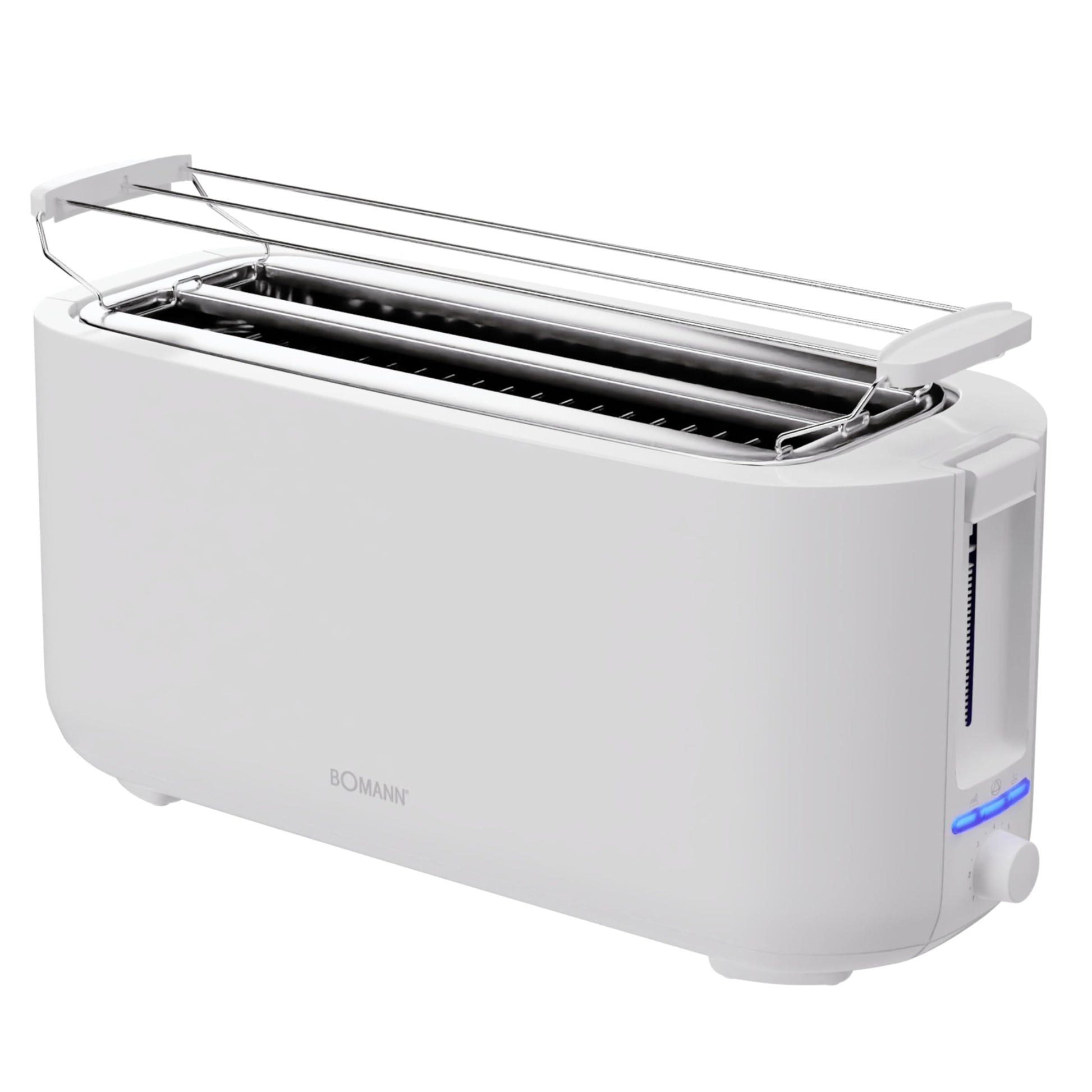 Bomann tosteris 4 šķēles | Garais tosteris ar atkausēšanas/uzsildīšanas/ātrā apstāšanās funkciju | Tosteris ar maizīšu uzgaļu | Tosteris balts arī tosta maizītēm un gatavām vafelēm | TA 6070 CB