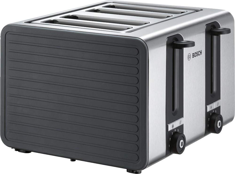 Bosch 4-slota tosteris TAT7S45, ar automātisko izslēgšanos, ar atkausēšanas funkciju, ideāli piemērots 4 šķēlēm grauzdiņu, 1800 W, nerūsējošais tērauds/pelēks