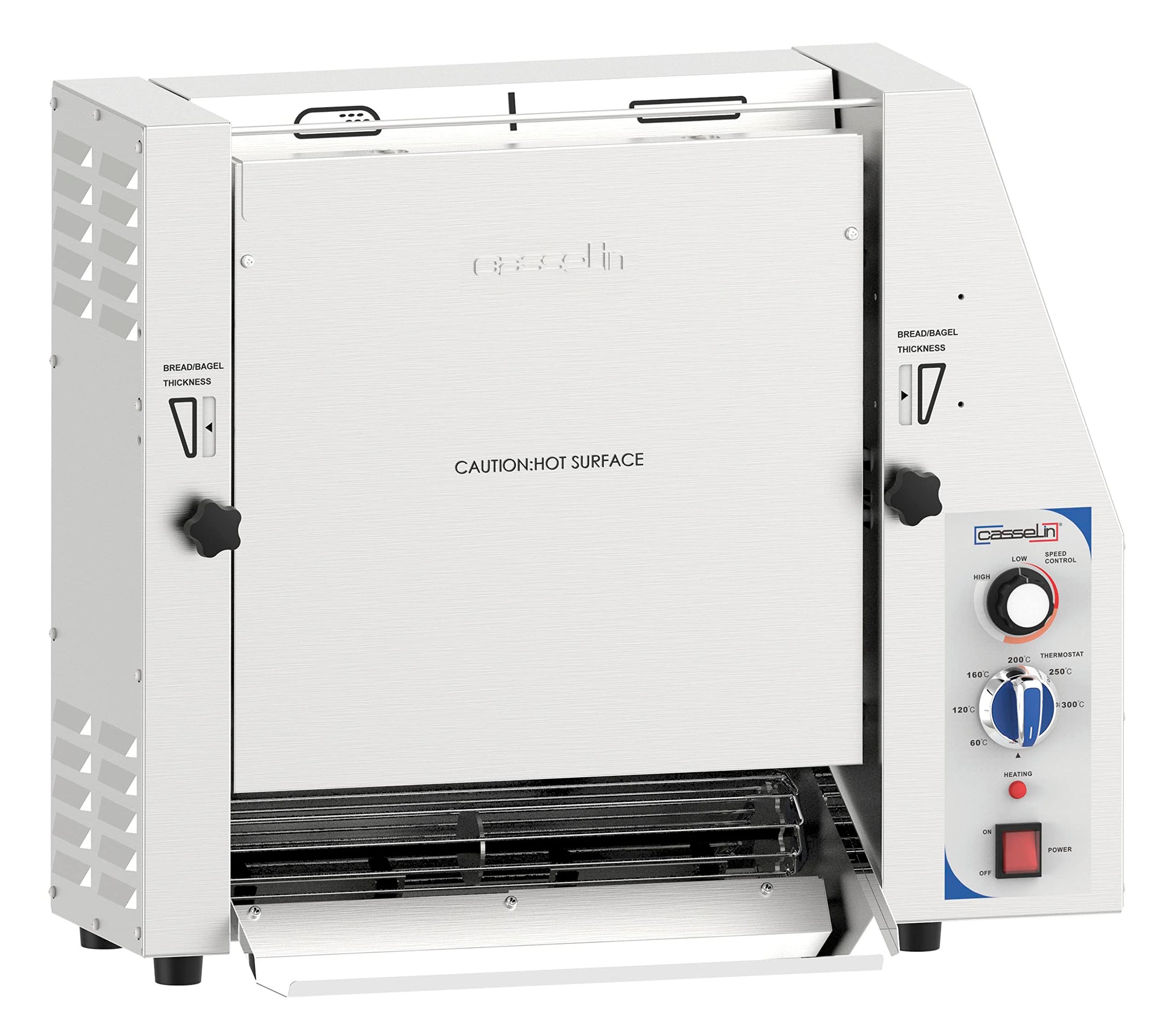 • Nerūsējošā tērauda korpuss • Ieslēgšanas/izslēgšanas poga • Regulējama apgriezienu skaita • Īpaši augšējai un apakšējai burgeru daļai • Grauzdēšana 8 sekundēs • 2 neatkarīgi regulējamie riteņi maizes biezuma iestatīšanai • Ražošanas jauda: 3,600 grauzdiņu stundā, tātad 1800 burgeri • Regulējams termostats no 60°C līdz 300°C • Jauda: 2 200 W / 230 V • Izmēri: Garums 675 x Platums 270 x Augstums 570 mm • Svars: 25,50 kg