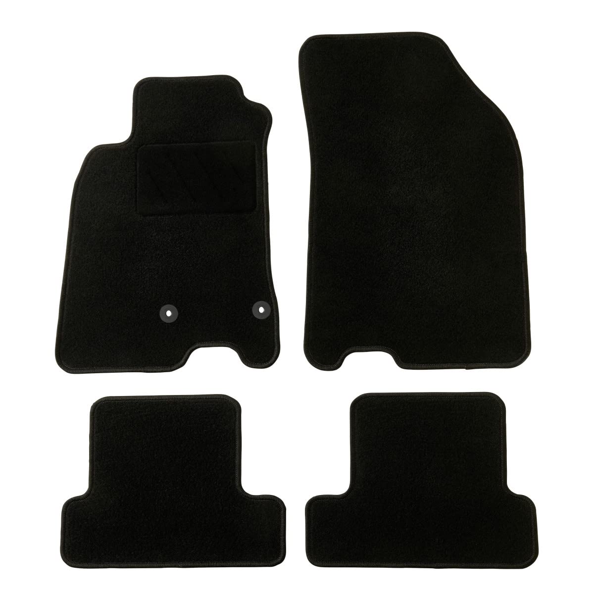 MAŠĪNAS IZGATAVOTAS | Paklāji, kas izgatavoti pēc precīzām RENAULT MEGANE 3 (no 11/2008 līdz 12/2016) izmēriem DROŠĪBA | Ekskluzīvs neslīdošs AUTOGRIP sistēma un stiprinājuma klipi 4 DAĻAS | 2 paklāji priekšā + 2 paklāji aizmugurē ILGMŪŽĪBA | Pastiprinājuma diski izturībai līdz 80 000 km [i] Perfekta aizsardzība un kontūras tekstila apdare melnā krāsā
