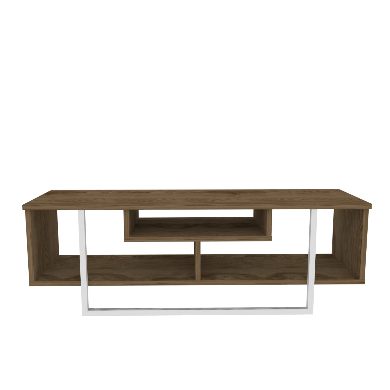 Astona 120 cm plats vienkāršs un minimālistisks mediju statīvs televizoriem līdz 55 collām tiek definēts ar praktisku funkcionalitāti un estētisku dizainu. Šis dizains piedāvā trīs stilīgas atvērtas plauktus, 48 cm platu un gandrīz 11 cm augstu virsmu centrā, kas ir ideāli piemērota TV tuneriem, tālvadības pultīm vai citiem maziem mediju ierīcēm. Papildiniet šo dizainu ar elegantu plakanā ekrāna televizoru, tad aizpildiet iekšējos atvērtos plauktus ar savām iecienītākajām grāmatām un DVD, ietvertām ģimenes fotogrāfijām un svečturiem, kamēr centrālo plauktu izmantojat savai jaunajai videospēļu konsolei un kabeļu kastītei. Apgriežams, gan priekšpuse, gan aizmugure var tikt izmantota kā priekšpuse. Mediju statīvs ir izgatavots no 18 mm bieza, augstas kvalitātes melamīna pārklāta skaidu plātnes un ir nostiprināts ar augstākās kvalitātes PVC malas lentes. Statīvs ir arī pastiprināts ar priekšējo metāla kāju, kas padara to izturīgu un ilgmūžīgu. Metāla daļa ir pārklāta ar skrāpējumiem un triecieniem izturīgu industriālo statisko krāsu. Izgatavots no videi draudzīgiem un veselībai nekaitīgiem TSE sertificētiem materiāliem.