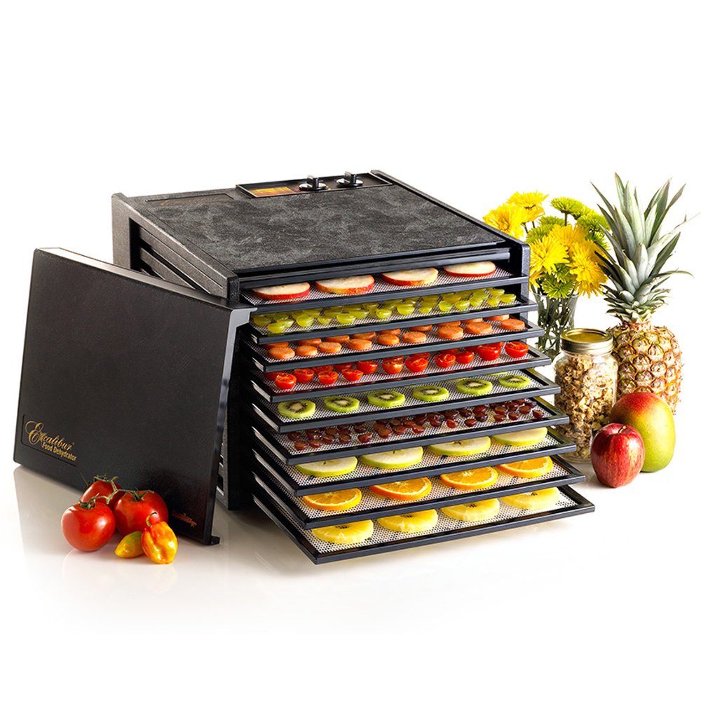 Excalibur 4926T220FB durvju iekārta ar 9 nodalījumiem un taimeri, melna