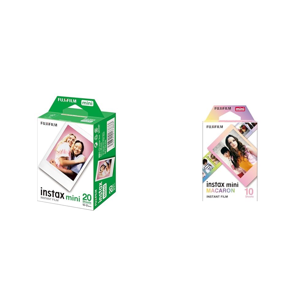 GT Photo retro fotofilma, 35 mm, 24 fotogrāfijām, zila 8. Fujifilm Instax Mini Instant Film, 2X 10 Blatt (20 Blatt), Weiß & Mini Frame WW1 Macaron, Bunt