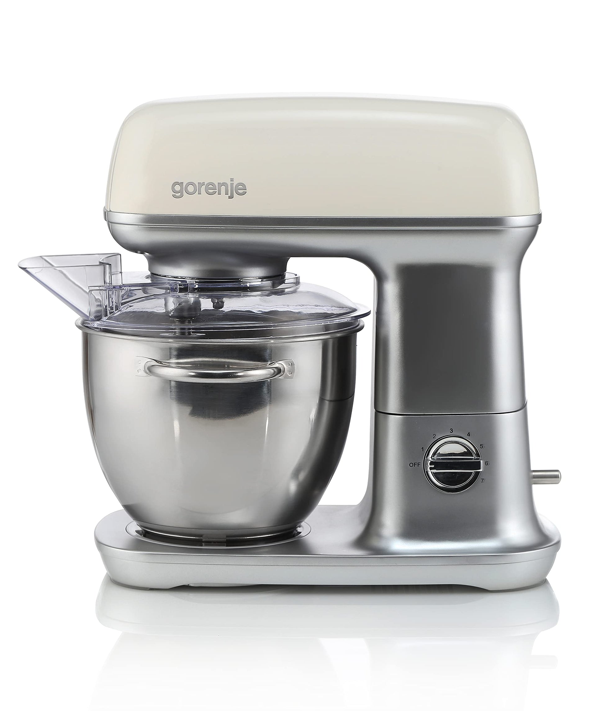 Gorenje MMC 1000 RL virtuves mašīna retro dizainā nāk ar 7 ātrumu līmeņiem. Šī virtuves mašīna pārliecina ar augsti efektīvu putotāju, silikona putotāju, 4,5 l tilpumu un 1000 W jaudu. Maisīšanas uzgalis griežas ap savu asi, kamēr maisīšanas galva griežas pretējā virzienā, tādējādi nodrošinot, ka visas sastāvdaļas ir perfekti un vienmērīgi sajauktas. Gaisa paliek mīklā, padarot to mīkstu un gaisīgu.