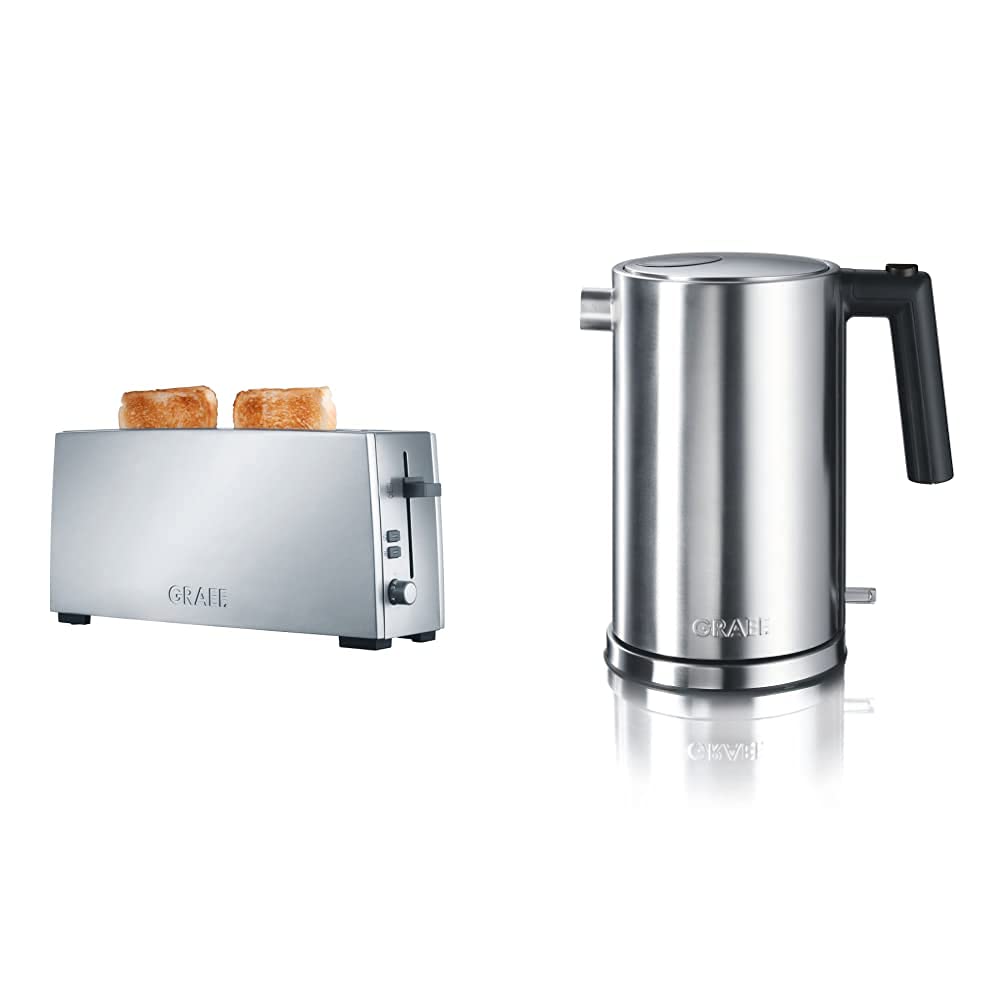 Graef Langschlitz-toasteris TO 90, nerūsējošais tērauds, sudraba krāsā un WK600EU tējkanna, nerūsējošais tērauds, 1.5 litri, nerūsējošais tērauds, matēts