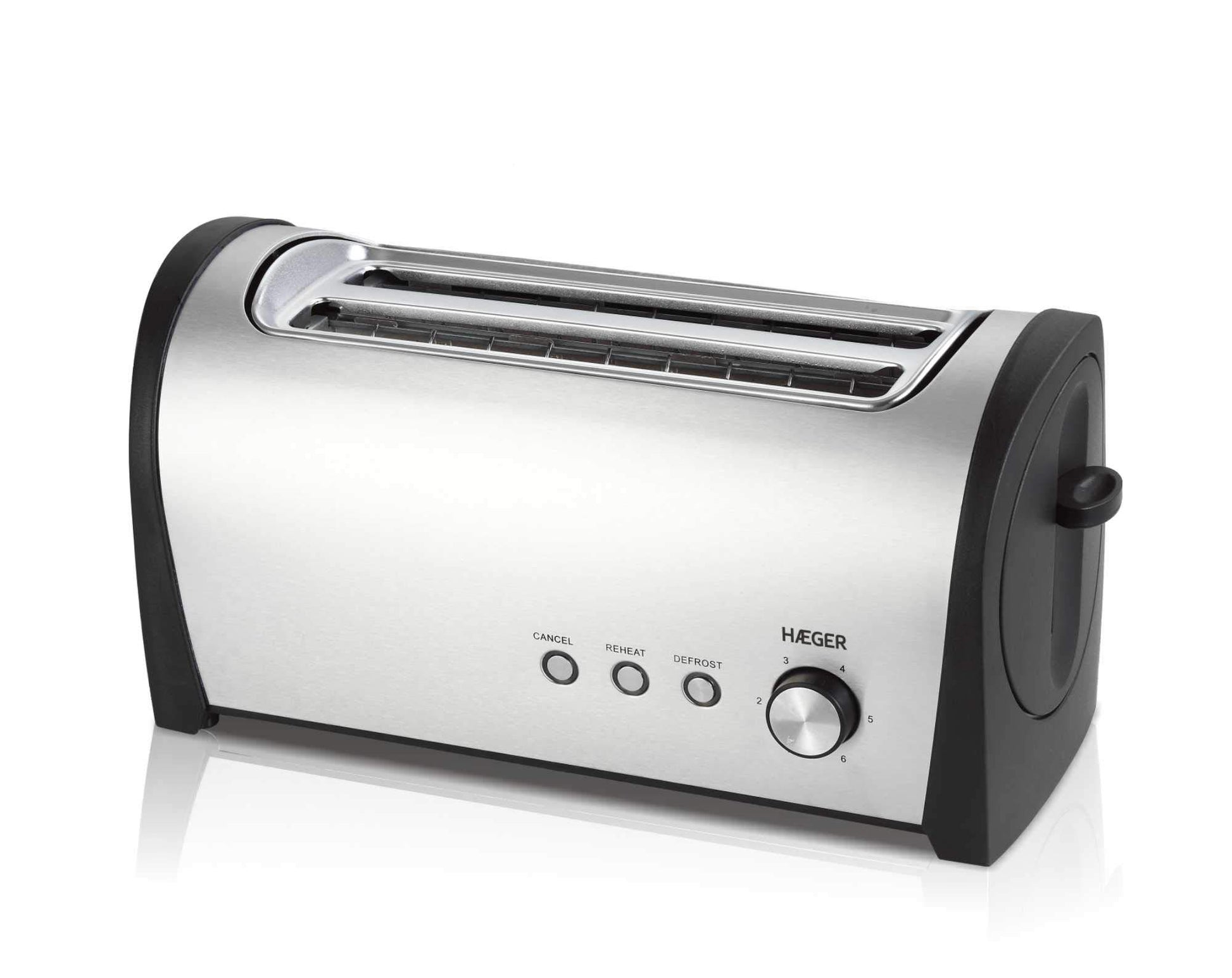 Haeger TO-14D.010A Multifunkcionālais tosteris ar 1400 W jaudu, 2 garas slits, ārpuse no nerūsējošā tērauda, elektroniskā tosta kontrole, 6 pozīcijas