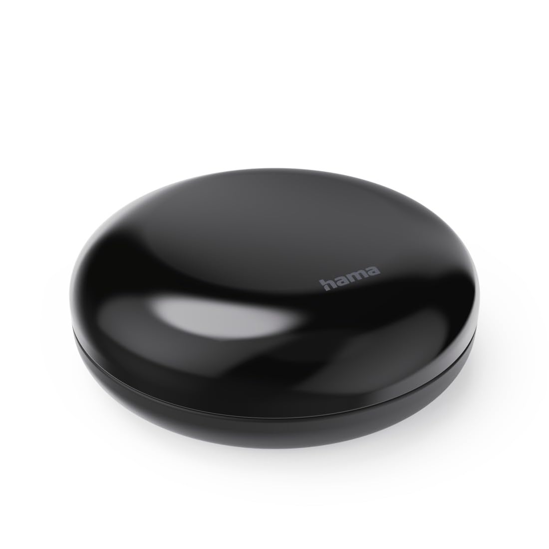 No televizora līdz gaisa kondicionētājam: Hama universālā tālvadības pults integrē katru infrasarkano staru tālvadību kontrolējamo ierīci viedajā mājā. Viedā tālvadības pults darbojas līdzīgi kā viedās mājas centrs un apvieno visas infrasarkano staru tālvadības pultis – nepieciešams tikai šis viens infrasarkanais raidītājs, oriģinālās tālvadības pultis no televizora, gaisa kondicionētāja, lampas, set-top box vai ventilatora ir liekas. Viedā tālvadības pults ir mazs raidītājs, kas pārraida infrasarkanos komandas. Komandas, kas tiek aktivizētas, izmantojot Hama Smart Home lietotni vai ar balss ievadi caur Amazon Alexa, Google Assistant vai Siri Shortcuts, WLAN universālā tālvadības pults nodod attiecīgajai ierīcei. Viedā tālvadības pults ir lietojama no jebkuras pasaules vietas, izmantojot lietotnes kontroli. Viss vienā tālvadības pults konfigurācija notiek ātri, pateicoties iepriekš instalētajai datu bāzei daudziem standarta ierīcēm, manuāli pievienojot lietotnē. Viedā tālvadības pults ir arī mācīšanās spējīga: vienkārši novietojiet to blakus oriģinālajai tālvadības pultij, aktivizējiet mācīšanās režīmu un, nospiežot attiecīgo taustiņu, saglabājiet komandu. Viedā WLAN universālā tālvadības pults var ne tikai iemācīties nezināmas ierīces komandas: var arī programmēt jauktas tālvadības pultis un apvienot dažādu ierīču komandas – piemēram, vienlaikus samazināt gaismu un ieslēgt televizoru. Caura Hama Smart Home lietotni infrasarkanais centrs var arī izpildīt ainas un automatizācijas un sasaistīt komandas ar nosacījumiem, piemēram, laika apstākļiem vai grafikiem.