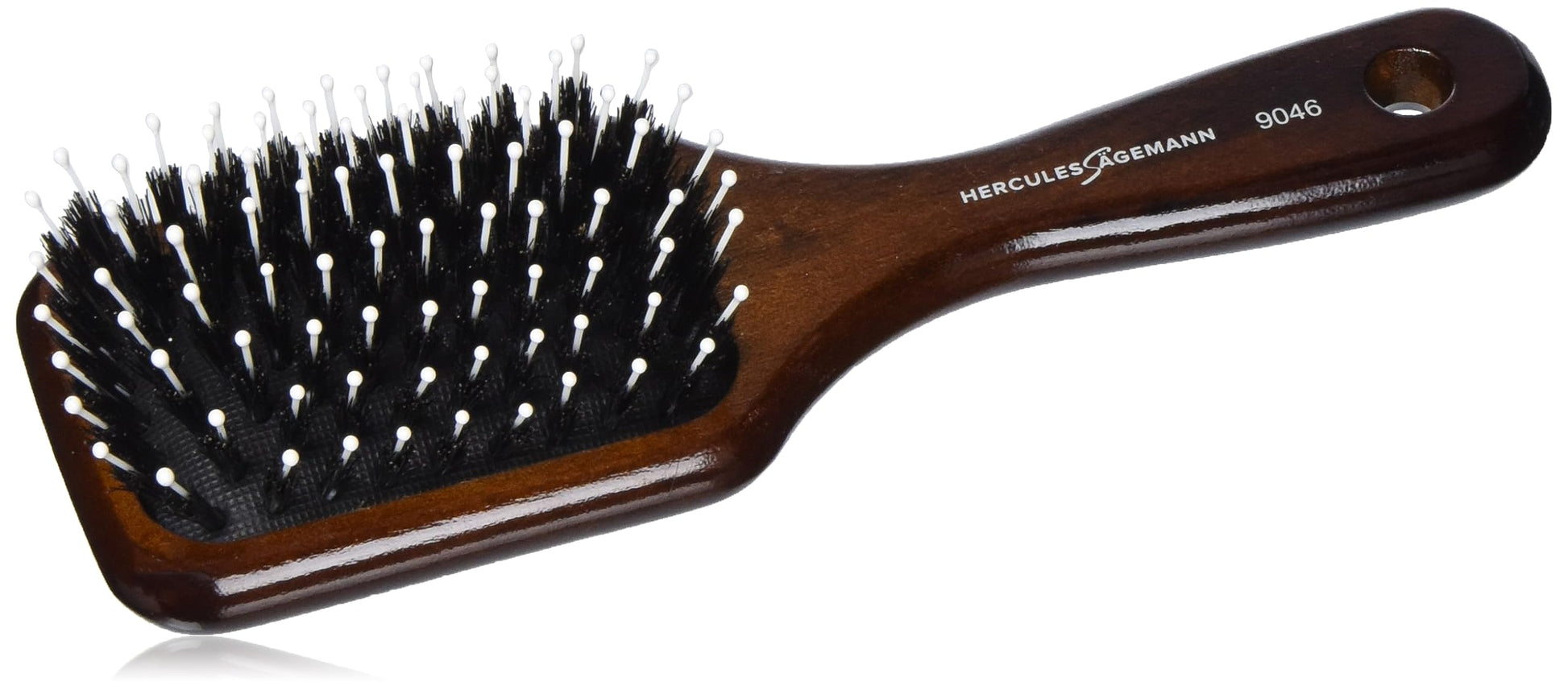 HERCULES SÄGEMANN - Peldēšanas suka, 8-rindu | Matu kopšanas suka no koka, lai izsistītu, ar mežacūku saru un poliamīda stieņiem ar maziem lodveida galiem veselīgiem matiem | Krāsa: Tumšs koks