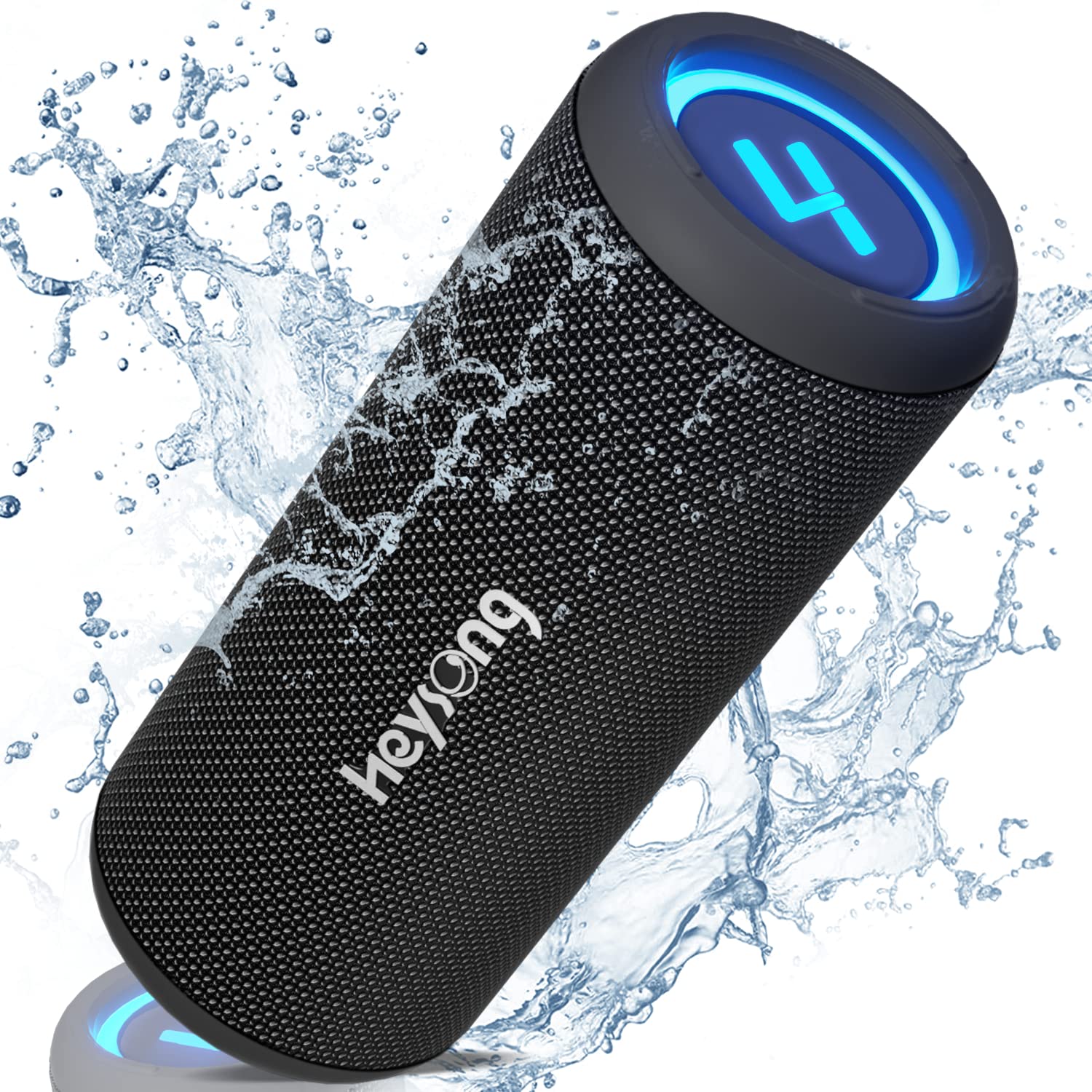 HEYSONG Portatīvais Bluetooth skaļrunis, bezvadu, ūdensizturīgs, RGB-LED gaisma, patiesi bezvadu stereo, spēcīgs bass ar HiFi skaņu, skaļrunis ar Micro-SD, USB zibatmiņu, 3,5 mm ligzdu, uzlādes veids