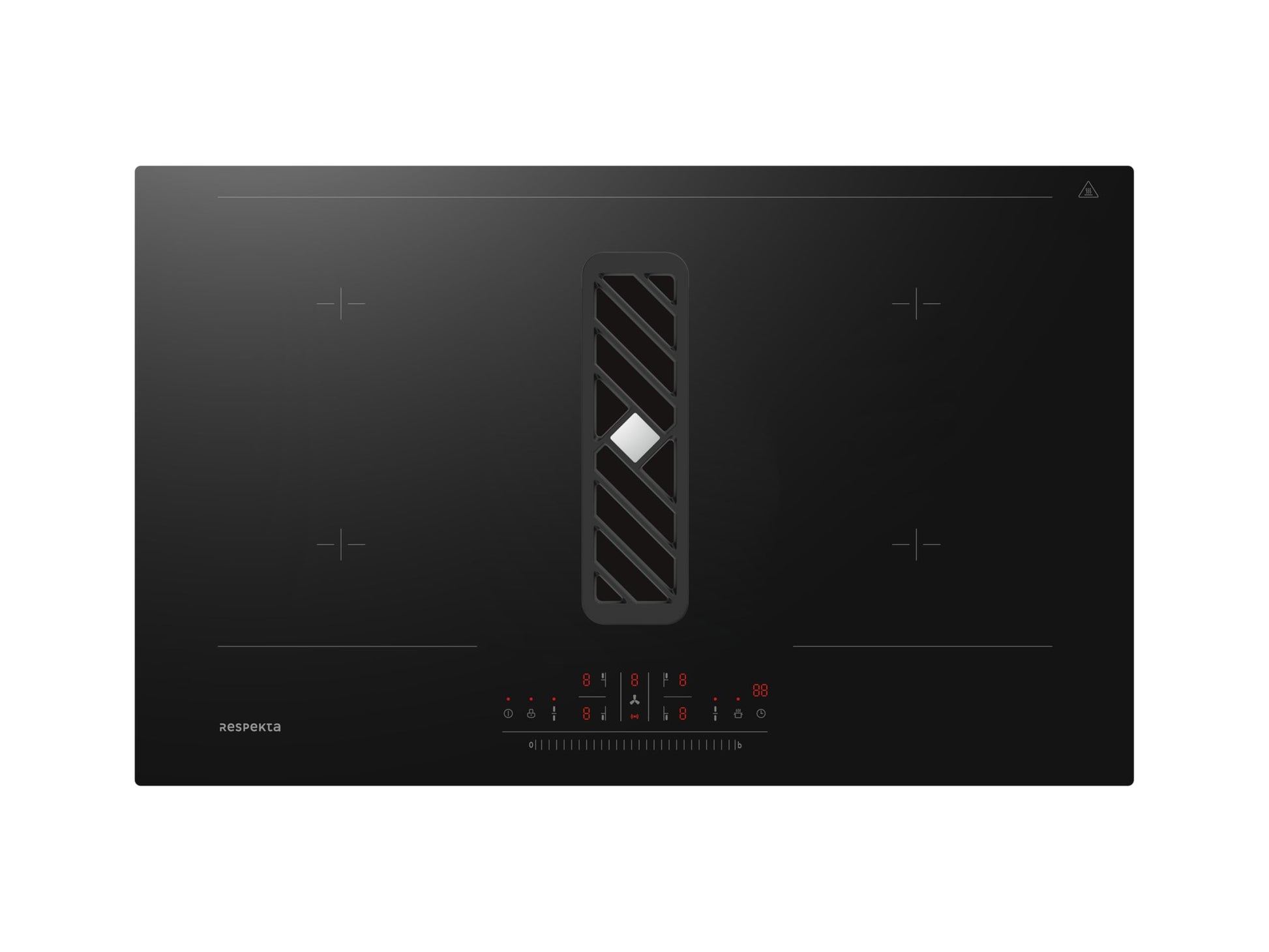 Respekta Calima indukcijas plīts virsma ar nosūcēju / daļēji vadīta recirkulācija / 9 jaudas līmeņi / tilta zona un pastiprinātāja funkcija / bērnu aizsardzība / 83 cm / KMCH7800I-45