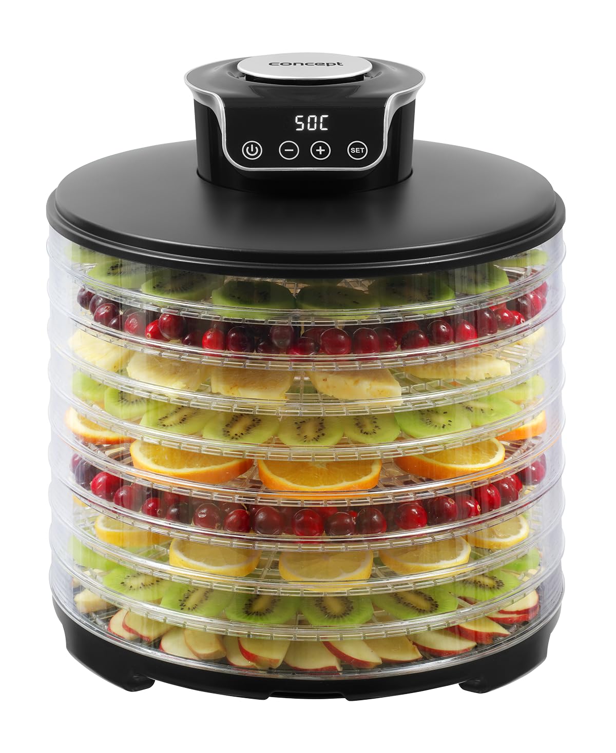 Augļu žāvētājs Concept SO3010 ir aprīkots ar 9 caurspīdīgām plāksnēm, skārienekrānu ar digitālo vadību, pakāpenisku temperatūras iestatījumu no 35–70 °C, taimeri un ventilatoru vienmērīgai žāvēšanai. Motora vienība atrodas žāvētāja vāka iekšpusē, tādējādi tā ir pasargāta no drupatām un pilējošām šķidrumiem.