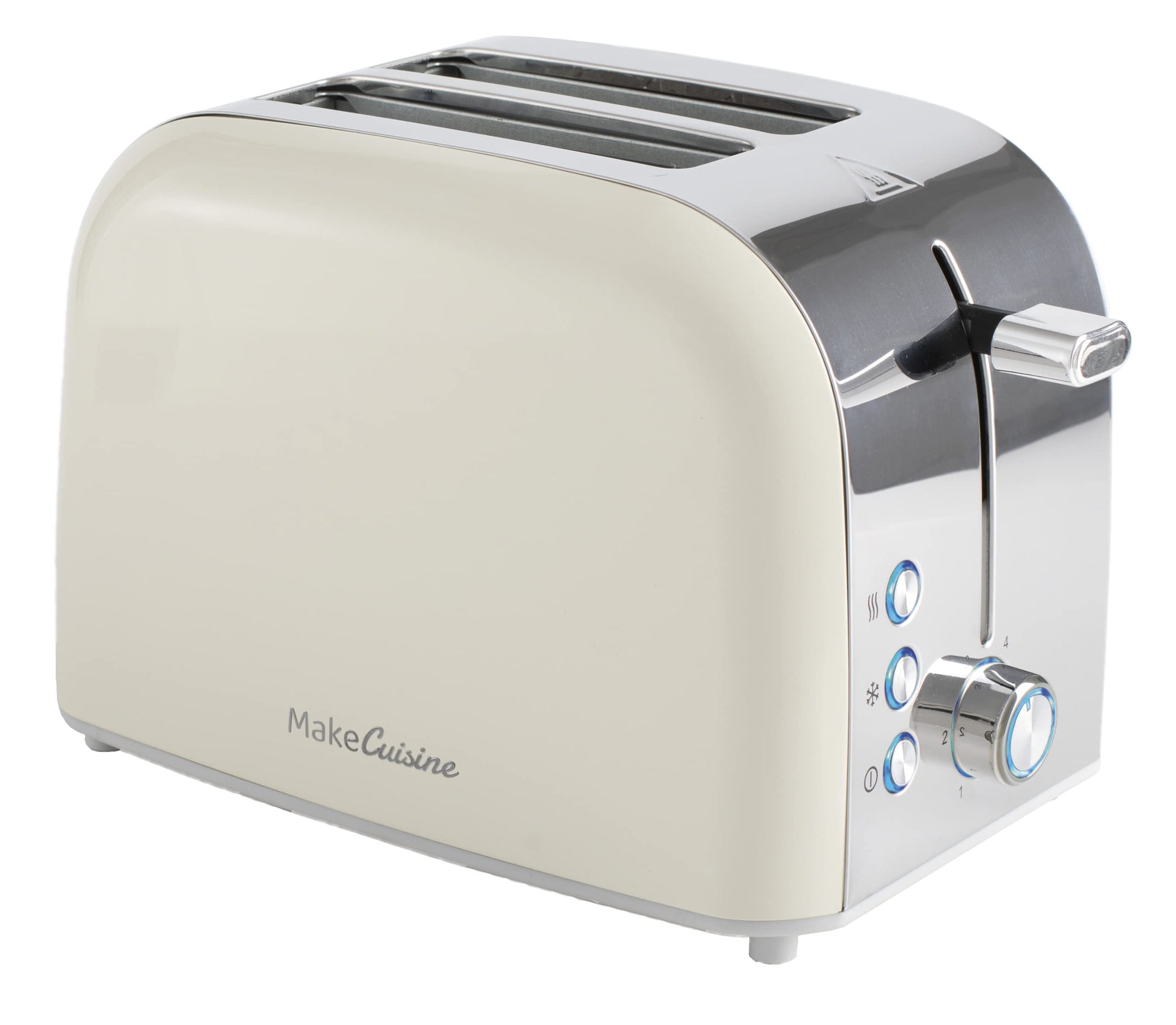 MakeCuisine Vintage-Retro-toasteris 2 platām šķēlēm/Atcelt, Atsaldēt, Uzkarsēt, Acces, maizīšu sildītājs + tosteru soma, nerūsējošais tērauds, maiga krēmkrāsa, 900 W