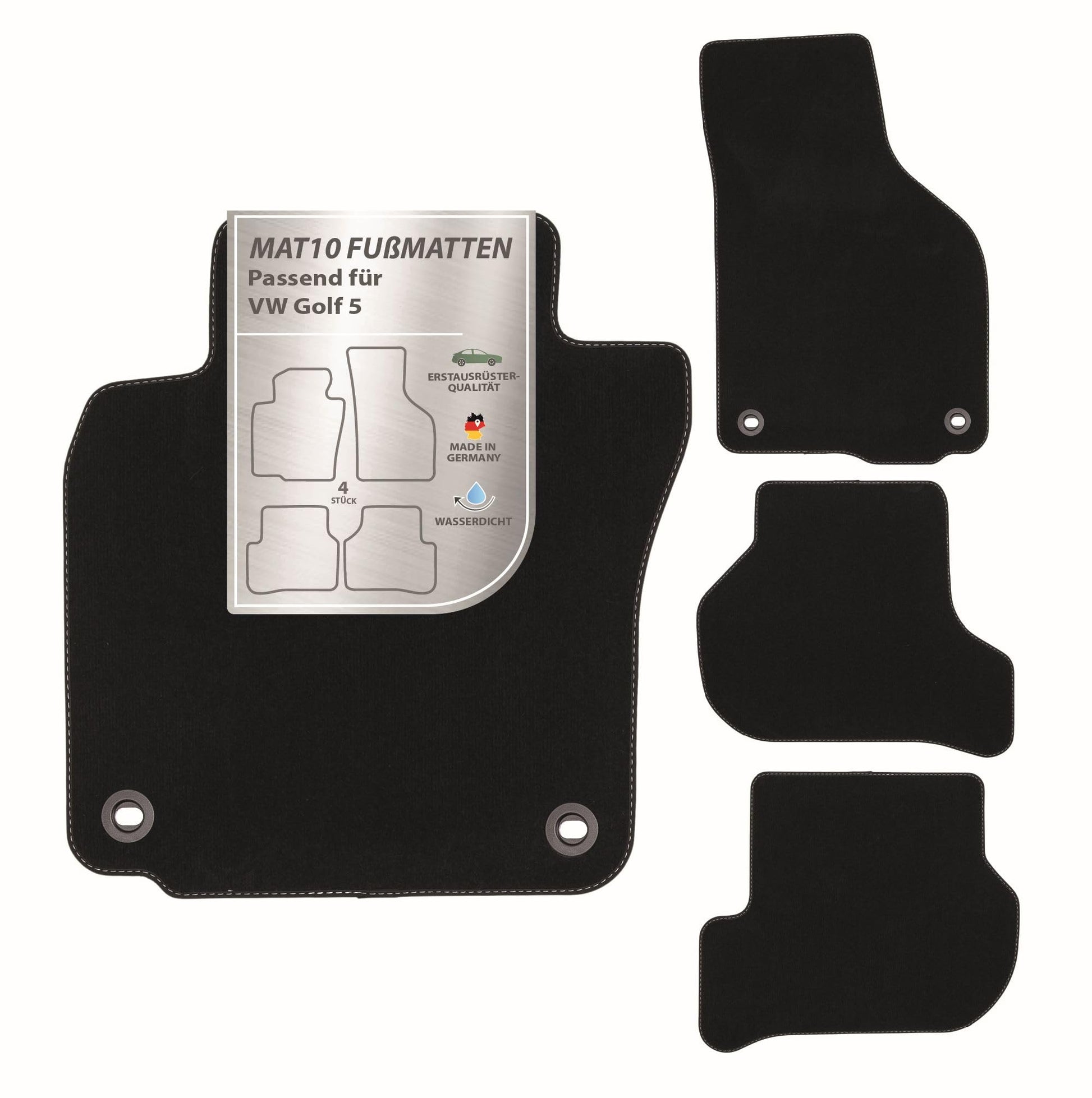 MAT10 – Auto-paklāji piemēroti VW Golf 5 (BJ 10/2003 - 12/2006, tips 1K) no velūra | 4 gabalu automašīnu paklāju komplekts | izturīga oriģinālo aprīkojumu kvalitāte, Ražots Vācijā, melns