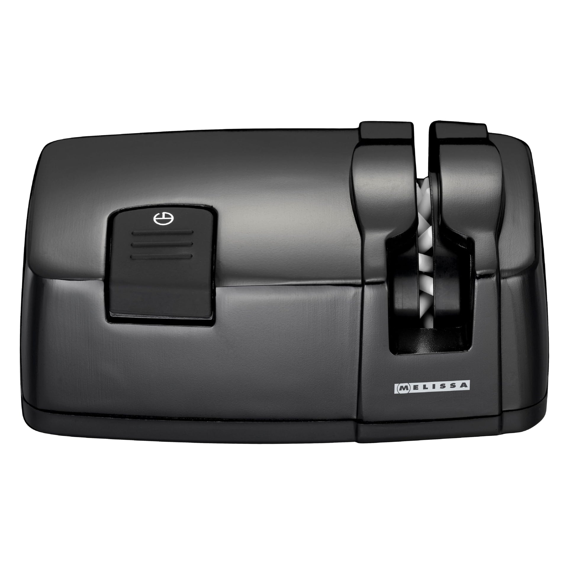 Melissa 16310233 nažu asinātājs - elektriskais nažu asinātājs - elastīgs slīpēšanas disks ar 20 keramikas stabiem - alumīnija korpuss - melns