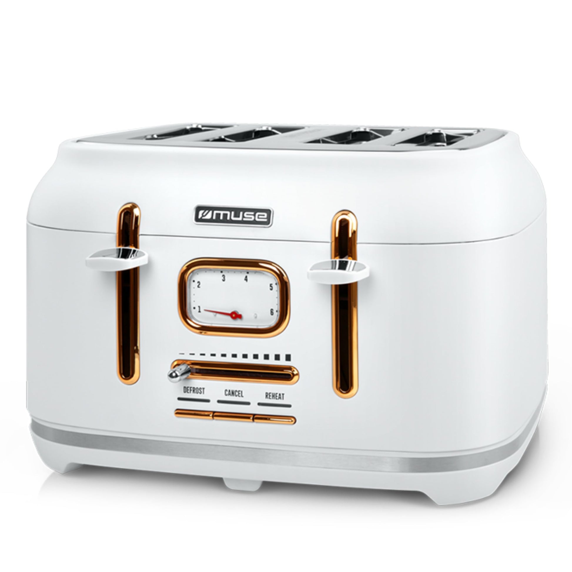 Muse nerūsējošā tērauda tosteris baltā retro dizainā, analoga displeja, apgaismotās pogas, 6 brūnināšanas pakāpes, 4 šķēles, MS-131 W, vintage izskats, ar drupatu atvilktni