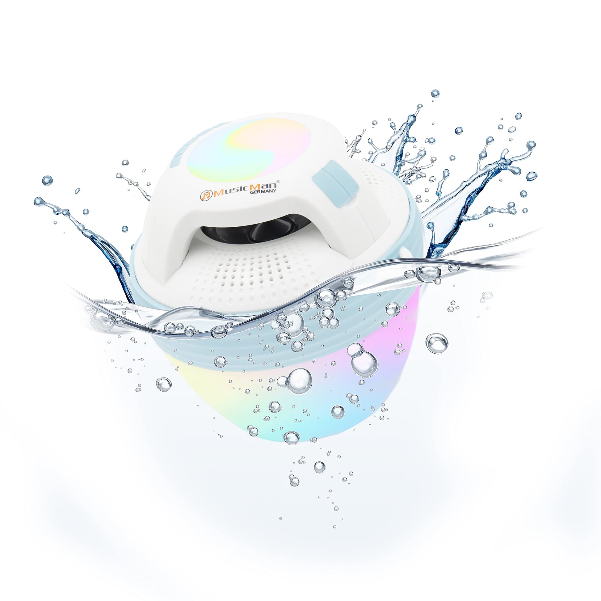 Musicman Pool skaļrunis BT-X60 - Pārnēsājams, bezvadu un ūdensizturīgs ar Bluetooth, 4 dažādu krāsu LED gaismām, brīvroku funkcija, darbības laiks līdz 8 stundām, IP67, zils-balts