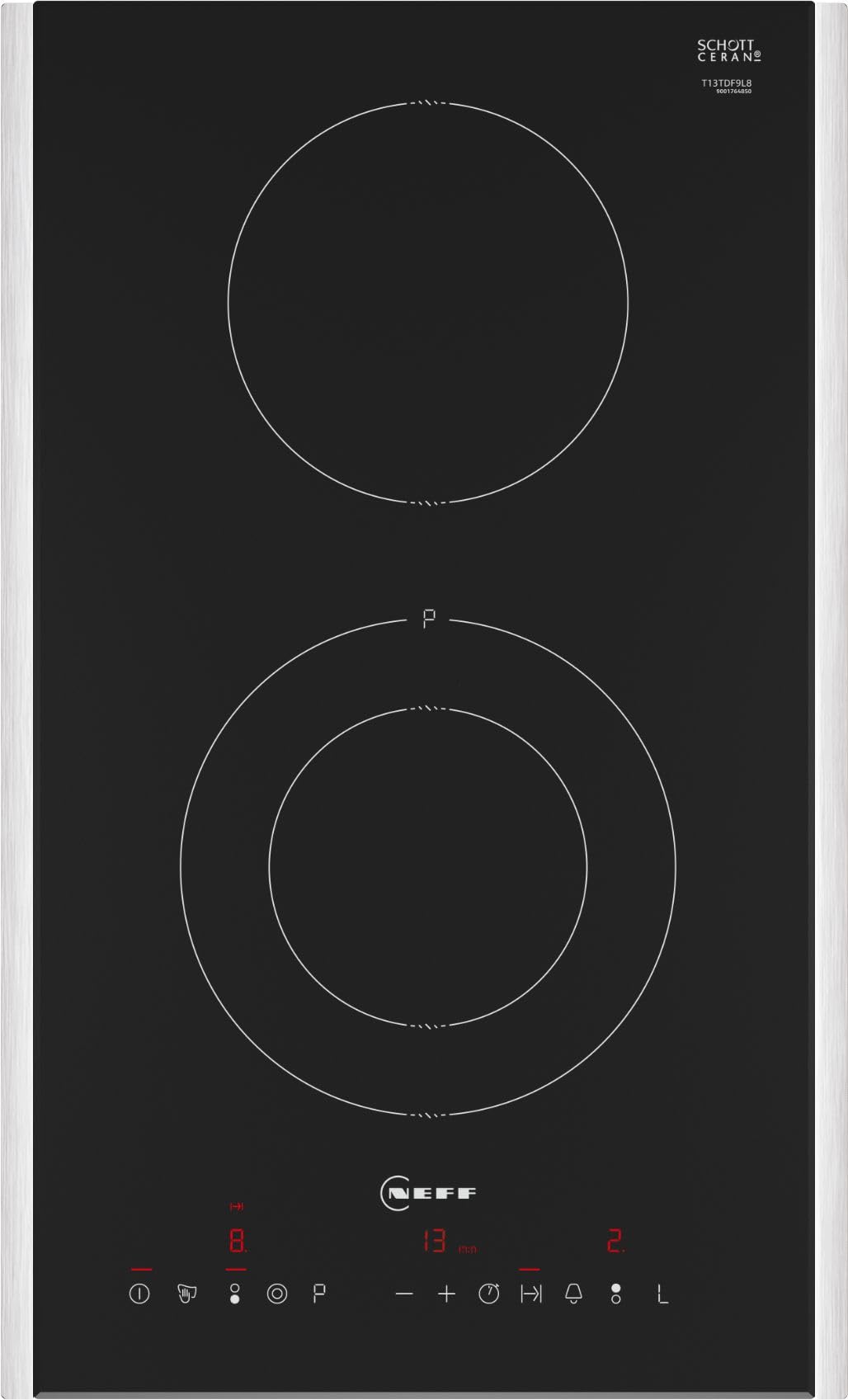Neff, T13TDF9L8, Domino plīts, N70, platums 30 cm, autonomā elektriskā plīts, TouchControl vadība, melns ar rāmīti.