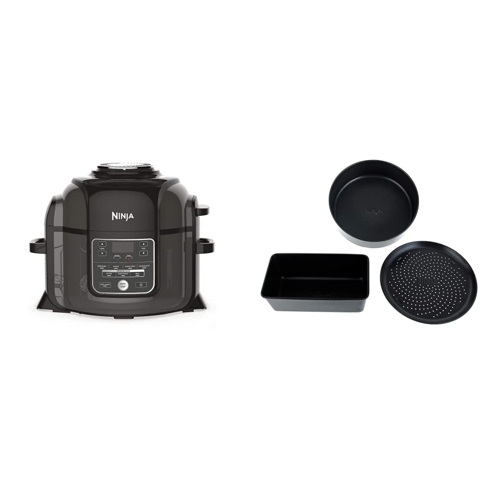 Ninja Foodi Multivārītājs [OP300EU] Tender-Crisp tehnoloģija, melns un pelēks & 4380J300EUUK Foodi 3-daļu nepiedegošā cepšanas formu komplekts, keramikas pārklājums, melns