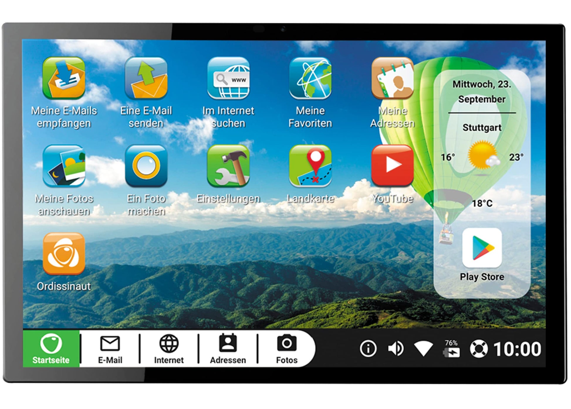 Ordissimo - Planšetdators Celia senioriem - Vienkārša lietošana - Liels 10 collu skārienekrāns - Intuitīva lietotāja saskarne, WiFi & 4G - 2 kameras & USB ports - Ideāli saziņai - Sudrabs