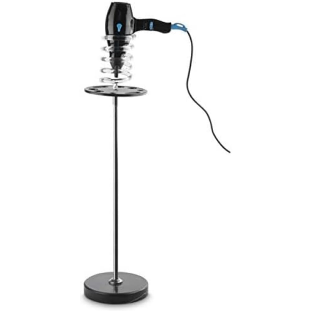 Šis fēnu turētājs ir paredzēts lietošanai frizētavā, un tas ļauj fēnu turēt jebkurā laikā un ļoti ērtā augstumā. Šis žāvēšanas statīvs ir izgatavots no augstas kvalitātes metāla materiāla ar apaļu pamatni melnā krāsā. Tas ir īpaši piemērots lieliem fēniem. Viegls lietošanā un pārvietojams no viena friziera uz citu. Ļoti stabils. Elegants un mūsdienīgs dizains, augstums līdz fēna pamatnei 85 cm.
