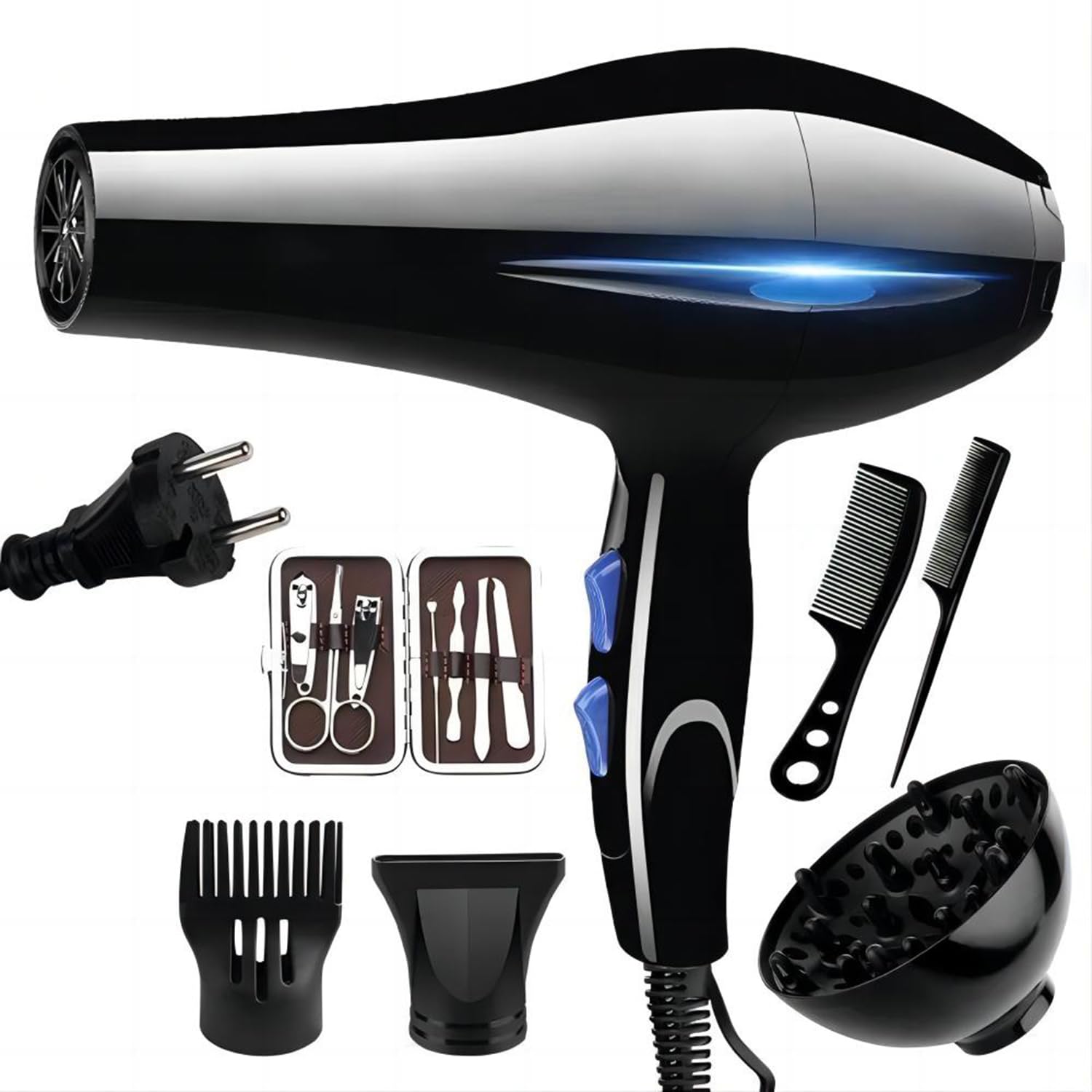 Profesionāls jonu matu fēns, 1200 vatu jaudīgs ātri žāvējošs salonu jonu matu fēns, ar difuzoru, uzgali un koncentratora ķemmi, 2 ātrumi un 3 temperatūras iestatījumi, piemērots saloniem un mājām.