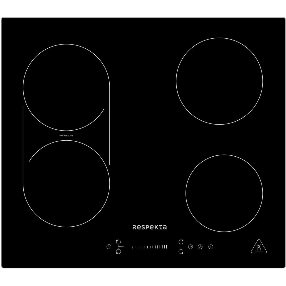 Respekta bezrāmju indukcijas plīts virsma autonomā/iebūvējamā induktīvā ar 4 plāksnēm/9 jaudas līmeņiem/taustes vadība/taimeris/bērnu aizsardzība/59 cm/melnā krāsā/KM 6600IB-28