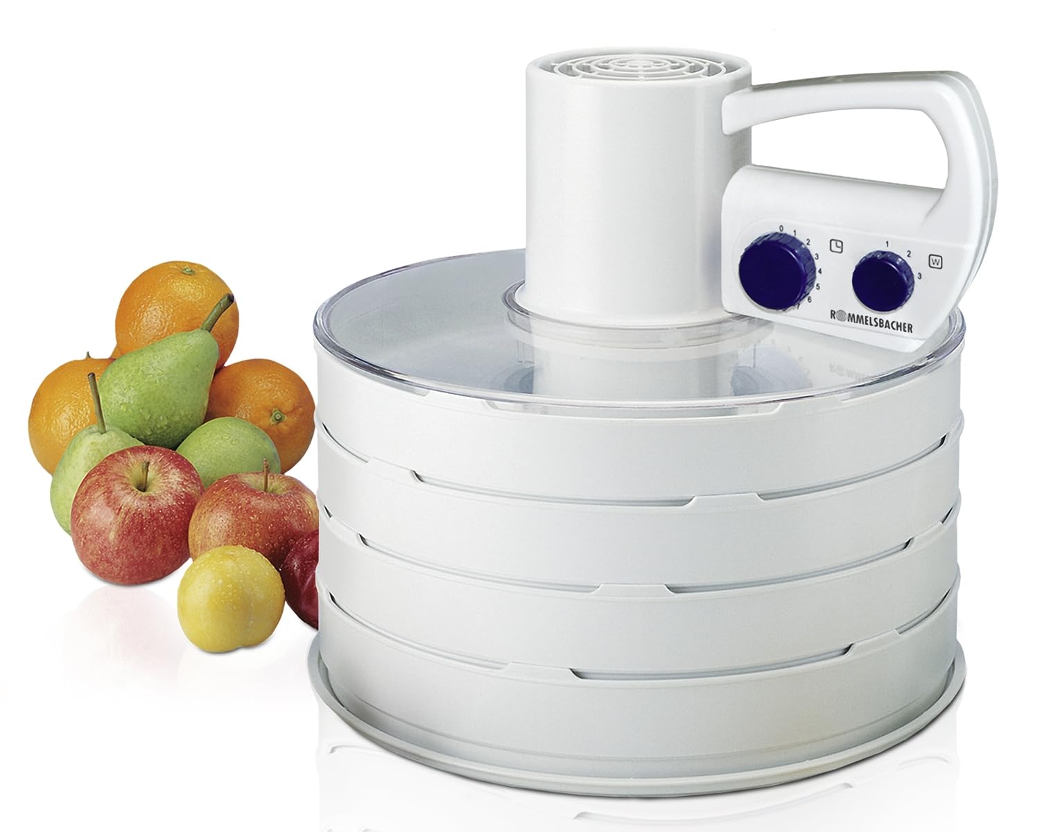 ROMMELSBACHER Dörrautomat DA 750-4 Dörretagen no plastmasas sēnēm, augļiem, dārzeņiem, garšaugiem un citiem, jaudas izvēle 3 līmeņos, 12 stundu taimeris, pārkaršanas aizsardzība, 700 vati, balts