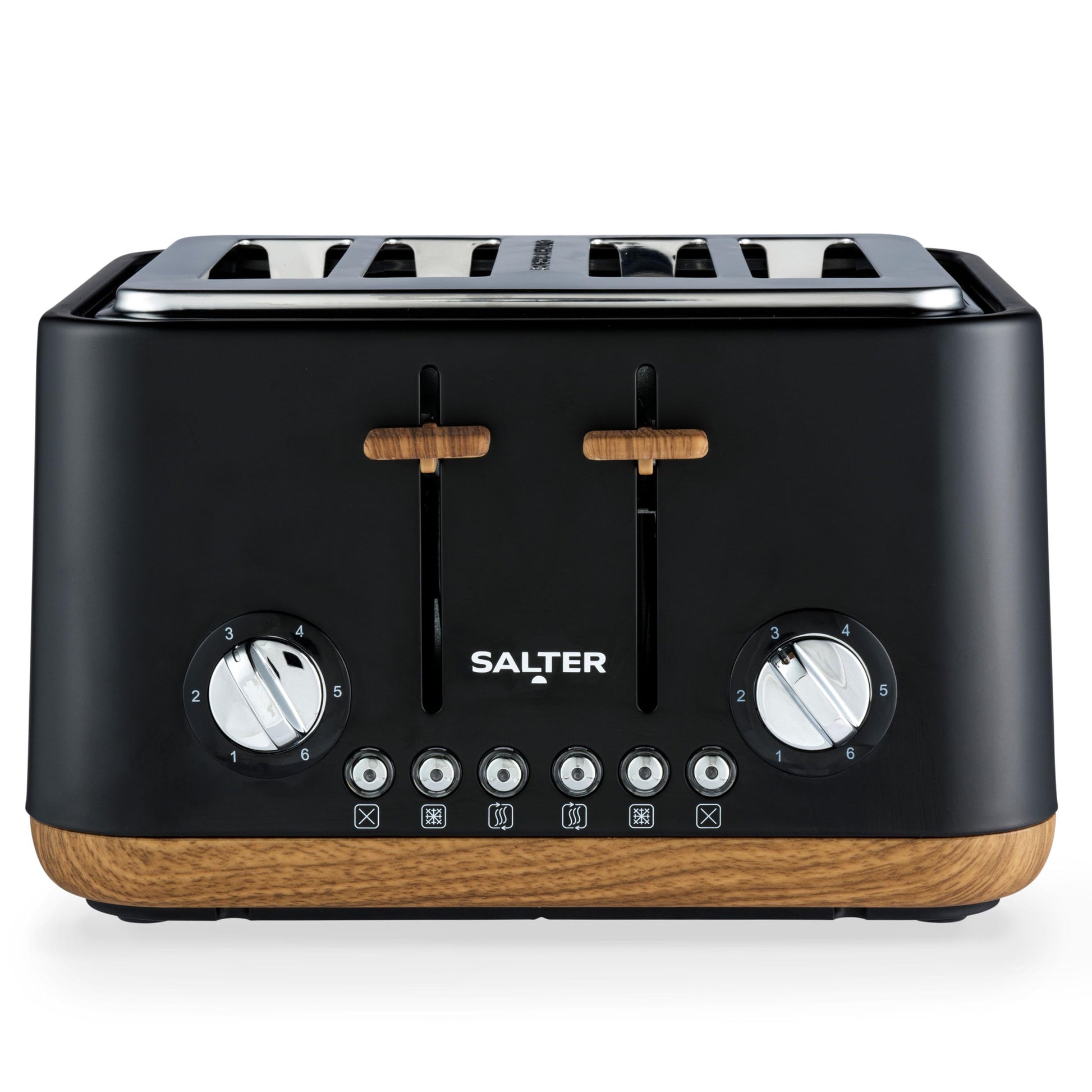 SALTER Toronto 4 šķēļu tosteris – plata atveres, 6 brūnināšanas līmeņi, izņemama drupatu atvilktne, atkausēšanas, uzsildīšanas un pārtraukšanas funkcija, pašcentrējošs, augsta pacelšanas funkcija, melns