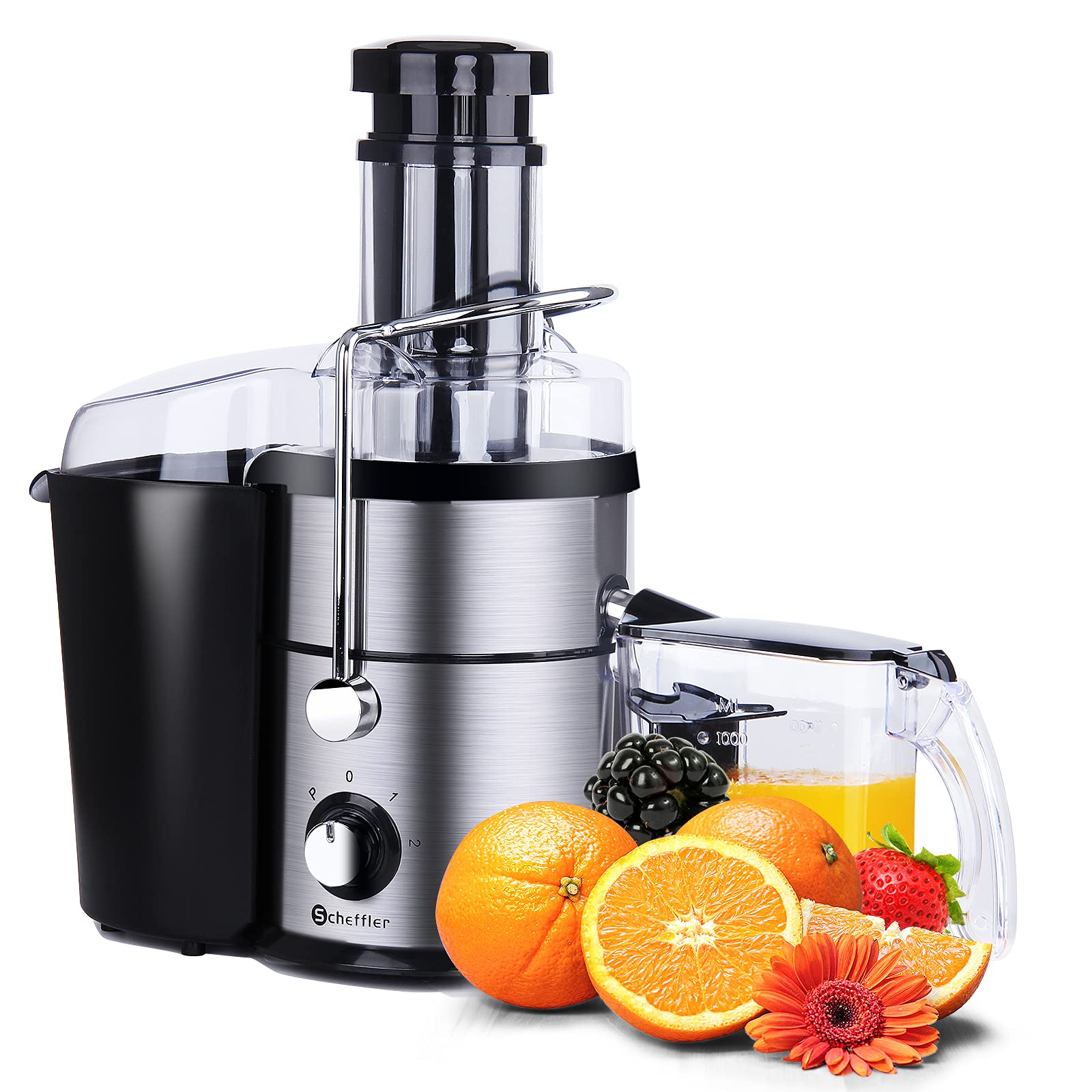 Scheffler nerūsējošā tērauda sulas spiede augļiem un dārzeņiem, 1000W centrifugālais sulas spiedes ar 1L sulas kannu, 2 ātrumu līmeņi, 73mm pildīšanas atvere