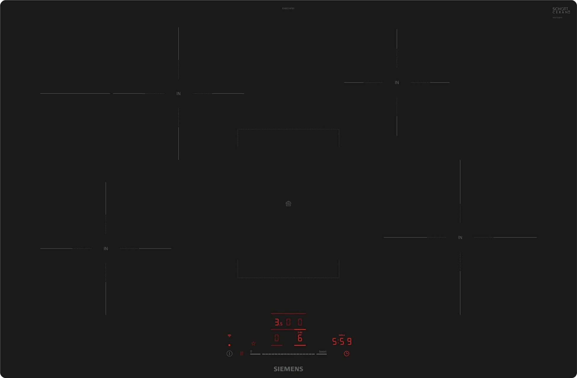 Siemens EH801HFB1E iQ300, viedā indukcijas plīts virsma, 80 cm, melna, līdzenā, TouchSlider, gaisa izsūknēšanas automātika – ideāla plīts virsmas un gaisa izsūknēšanas kombinācija.