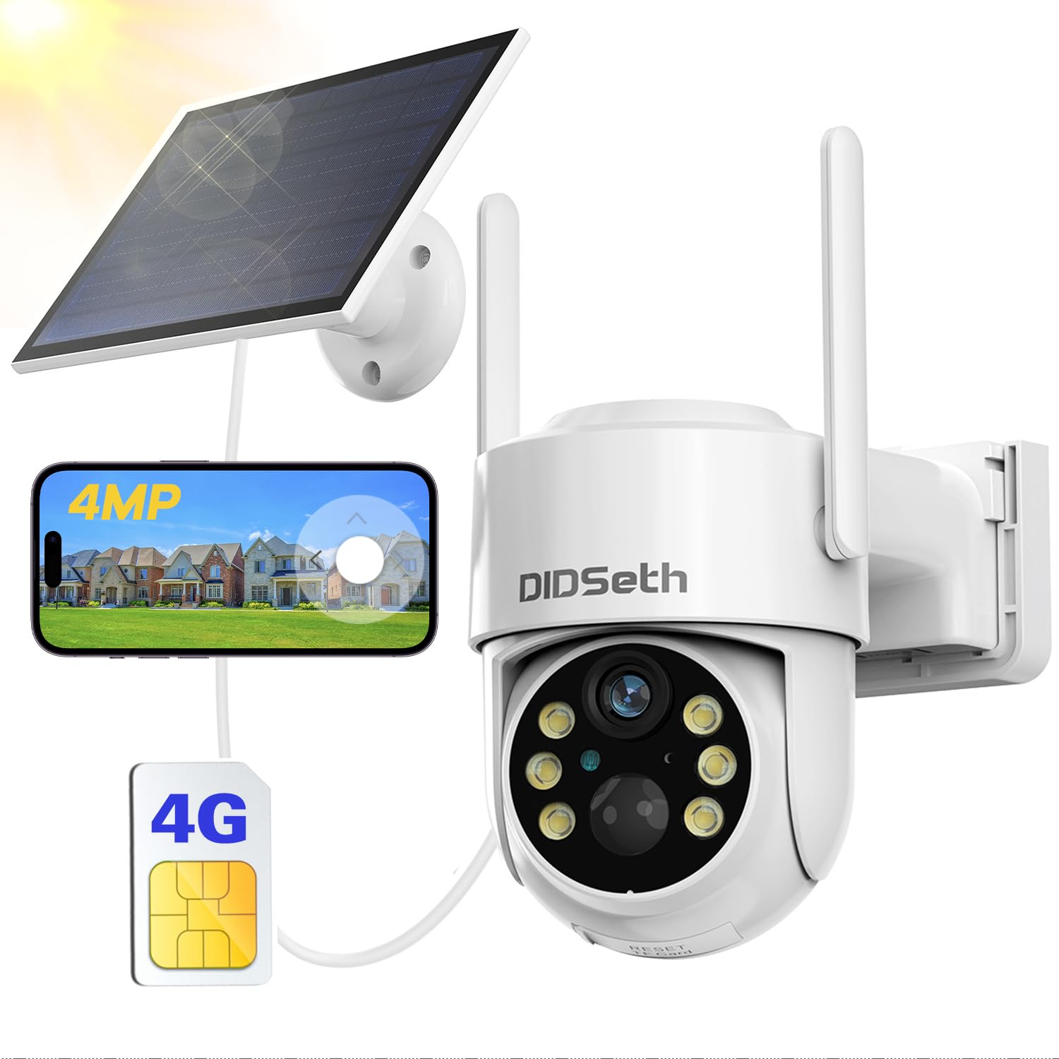 Uzraudzības kamera ar SIM karti, 2K 4MP kamera ar SIM karti un saules paneļa, 355°&90°PTZ uzraudzības kamera ārā bez Wi-Fi, krāsu nakts redzamība, PIR cilvēku atpazīšana, divvirzienu audio, SIM karte, IP66
