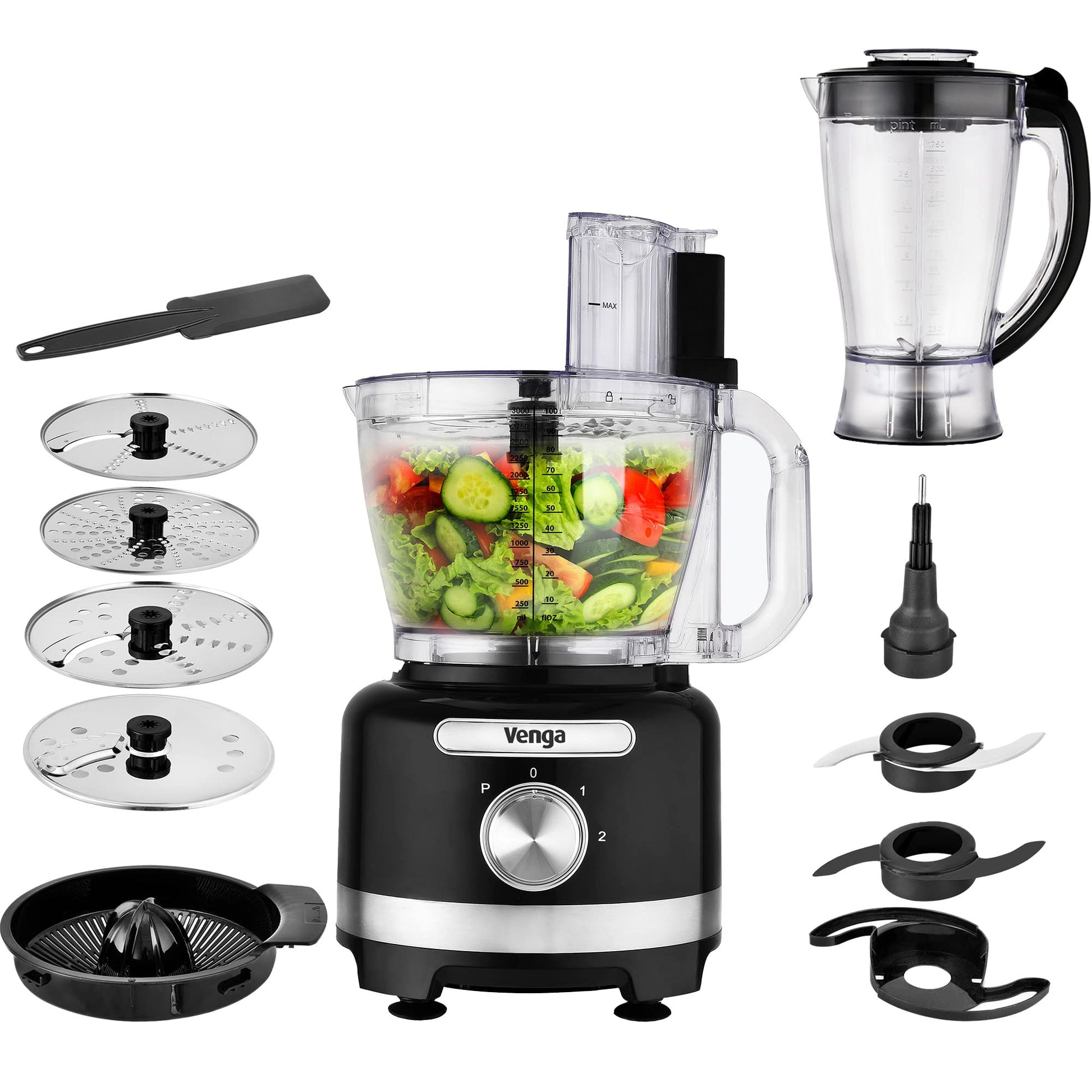 Venga! 8-in-1 virtuves mašīna, 3 l bļoda, 1,75 l maisīšanas trauks, 2 ātrumu līmeņi, turbo funkcija, 1000 W, melna/sudraba, VG HA 3001
